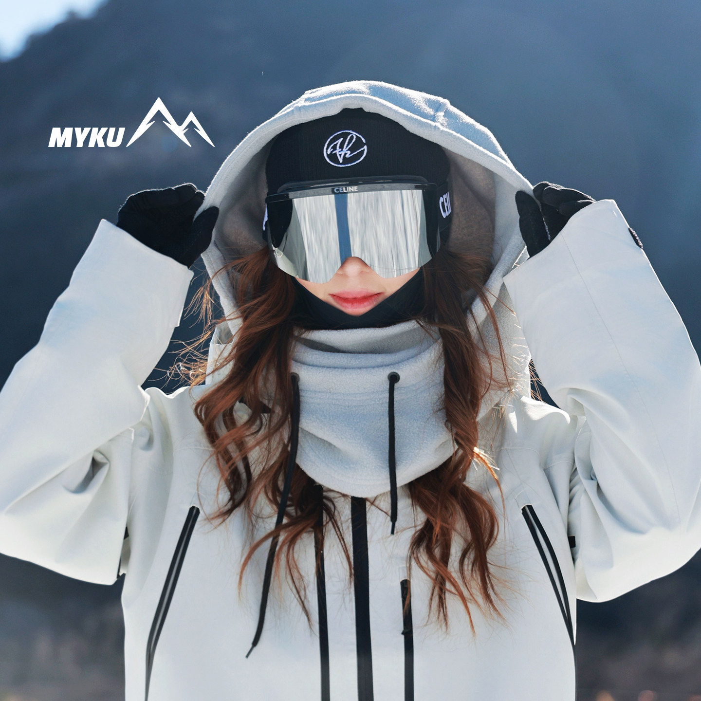 MYKU男女款头盔帽风雪帽头盔外可用抓绒防冻保暖防风护脸滑雪头套