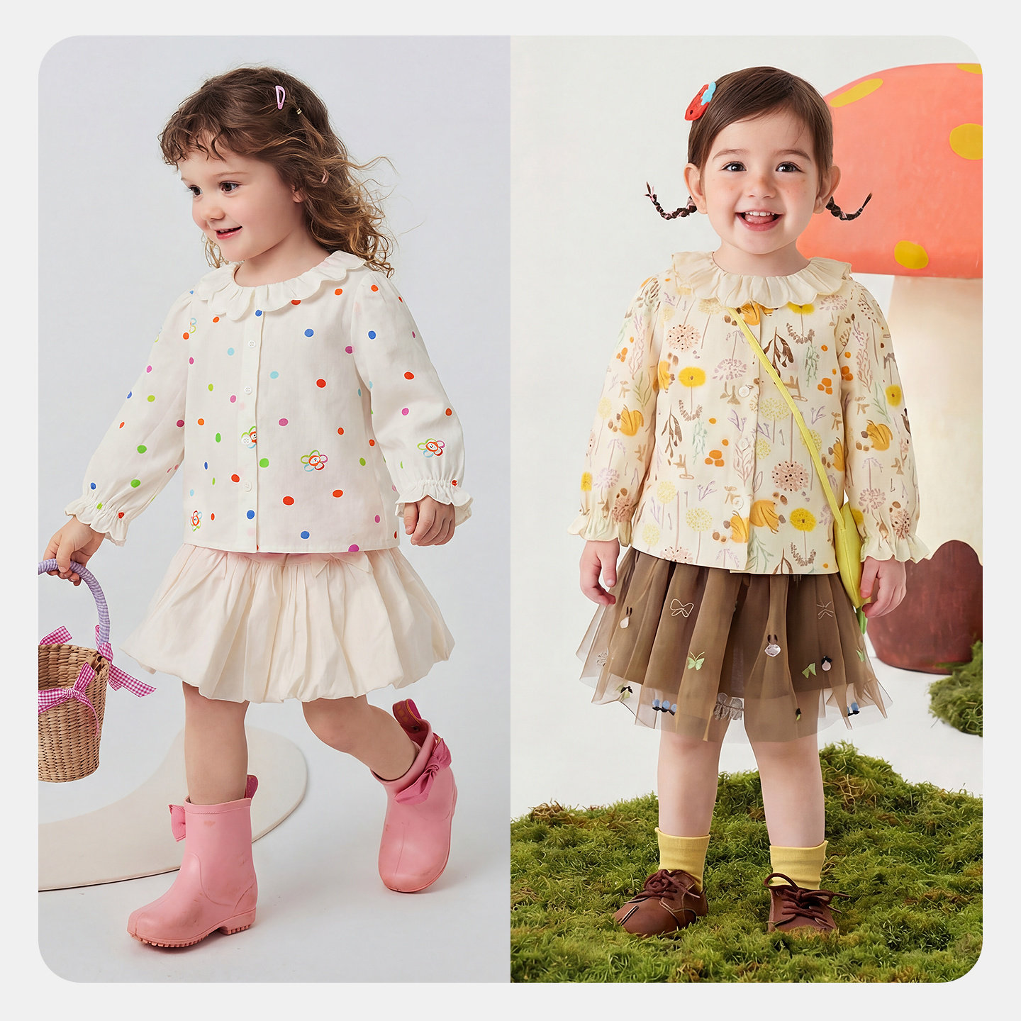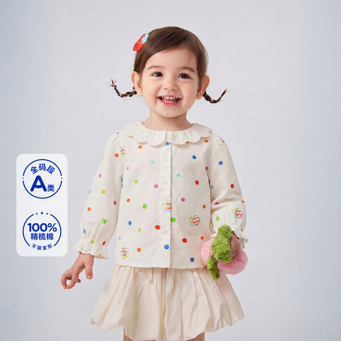 迷你巴拉巴拉女童长袖衬衫春新品甜美法式纯棉翻领儿童上衣