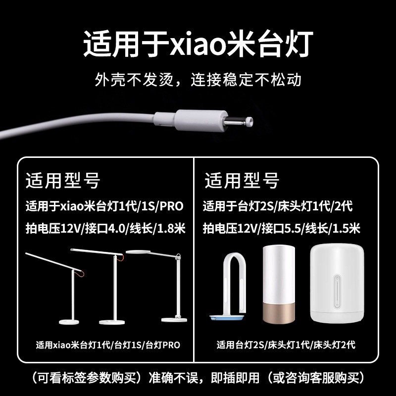 适用于通用xiao米12V0.5A/1A护眼LED控制装置适配器台灯床头灯1/2代/1S/2S/PRO电源充电器线