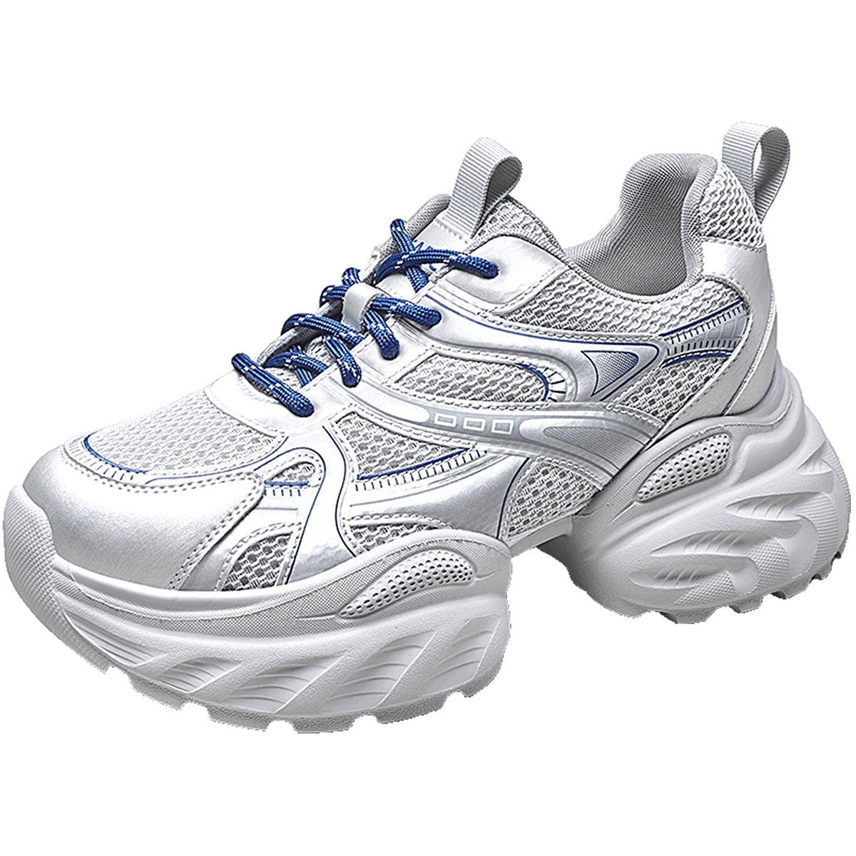 厚底老爹鞋女2025女款新款秋冬保暖加绒女鞋银色内增高休闲运动鞋