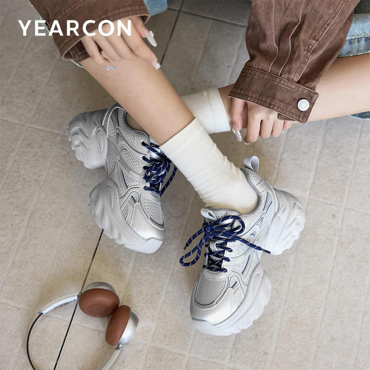 意尔康女鞋2026春季女士单鞋松糕厚底老爹鞋运动休闲英伦风小个子