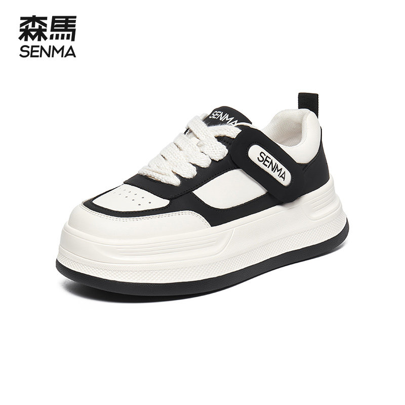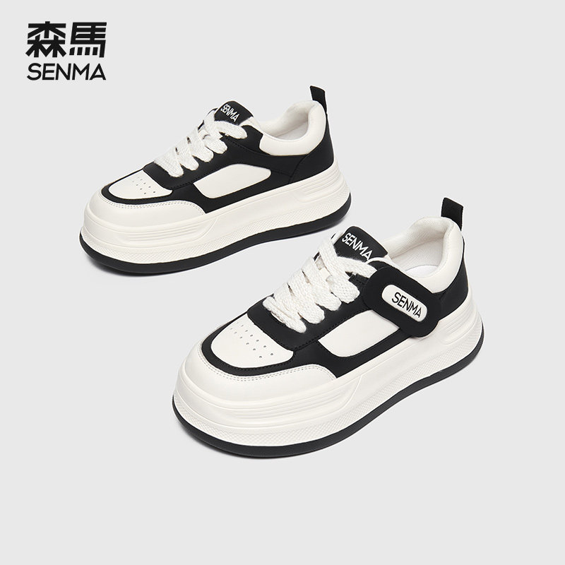森马板鞋女松糕厚底鞋女小白鞋女款休闲增高2024新款黑白色熊猫鞋