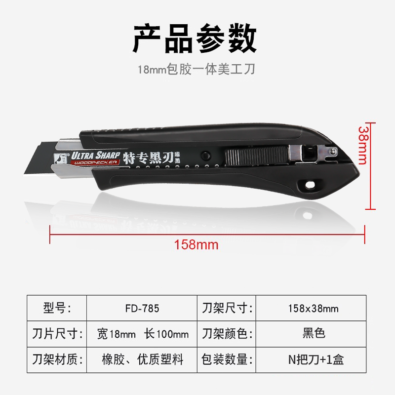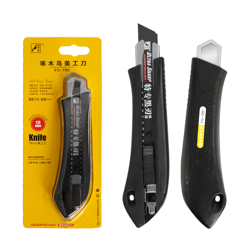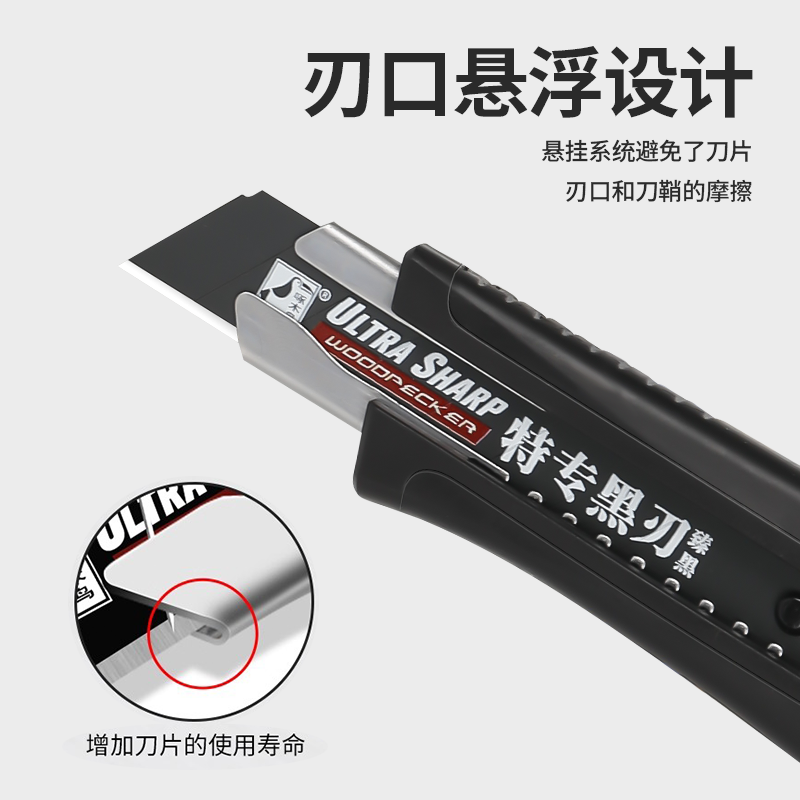 啄木鸟美工刀重型加厚刀架18mm大号壁纸刀介刀裁纸刀美工刀电工刀塑料包胶推扭美工锋利耐用手感好美工刀