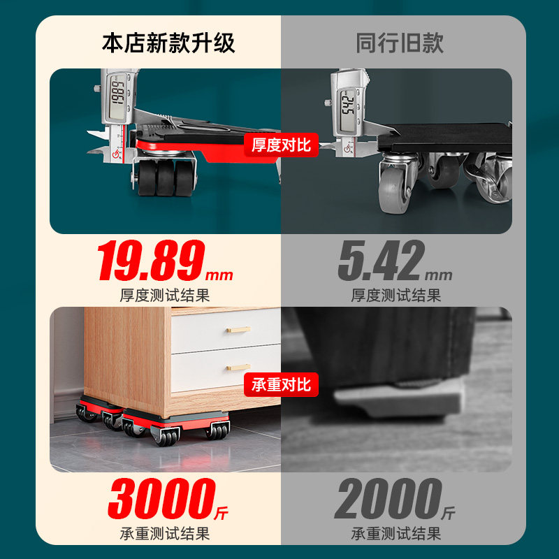 搬重物神器搬家万向轮家具冰箱底座抬柜子移动器滑轮挪床搬运移位