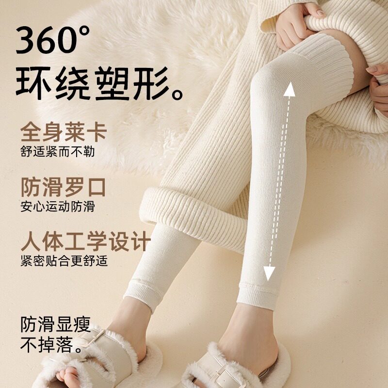 过膝袜子女高筒袜秋冬季加绒加厚保暖大腿纯色冬天半截长筒袜膝盖