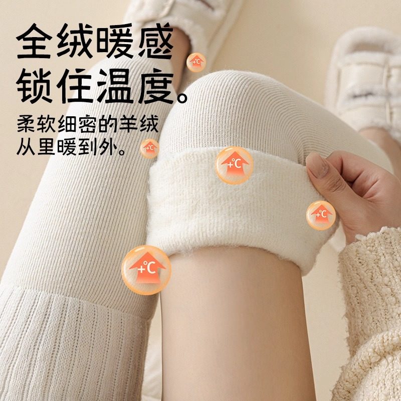羊毛过膝袜女秋冬款羊绒长筒袜加绒加厚保暖大码孕妇坐月子大腿袜