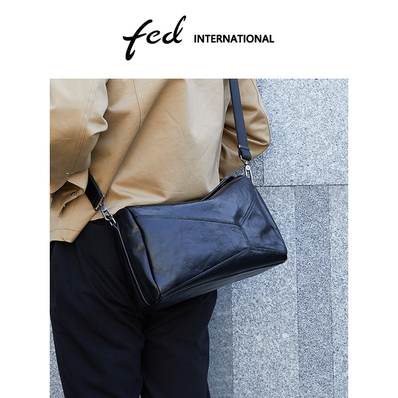 fed植鞣皮头层牛皮男包斜挎包爆款单肩包休闲大容量几何包BFA2030