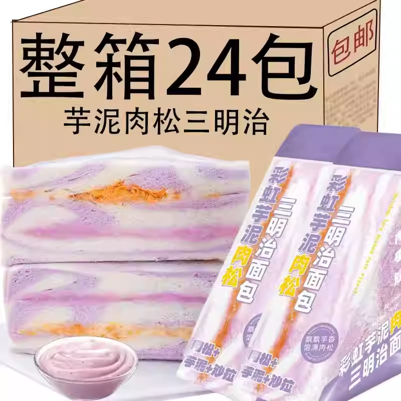 芋泥肉松三明治面包早餐整箱牛油果肉松沙拉无边吐司学生健康零食