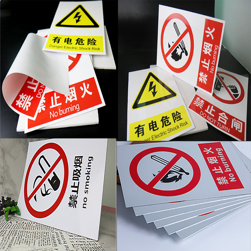 PVC有电危险警示贴当心触电标识牌机械设备安全标识当心夹手机械伤人当心高温注意安全警示牌标志牌禁止吸烟