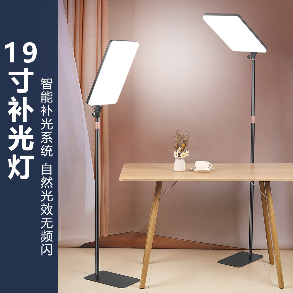 三色全面屏平板灯19寸落地式1.8米直播补光灯拍照摄影灯美颜打光灯主播专用直播间室内影棚方形led灯底盘支架