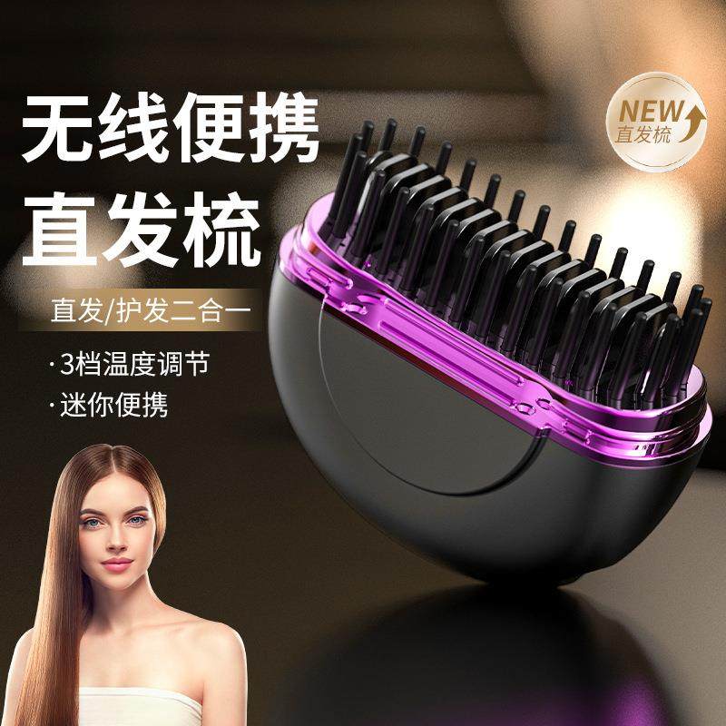 新款迷你充电直发梳家用电器卷直两用不伤发方便携带不插电直发器