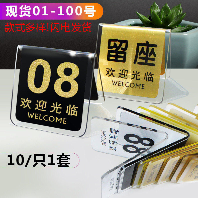 亚克力桌号牌立式桌牌台卡餐厅号码牌创意座位牌双面叫号牌数字牌取餐牌留座已预定牌候餐饭店叫号牌定制定做