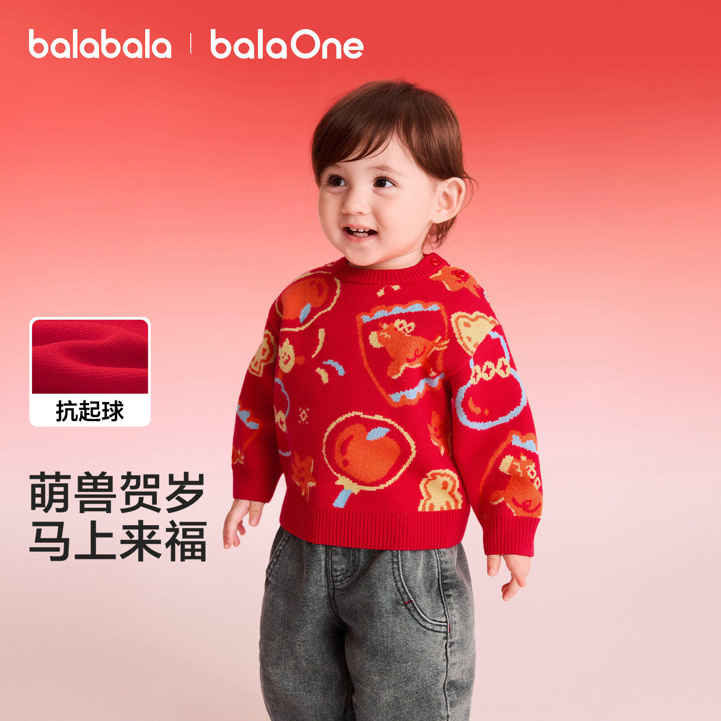 【香菇超级年货节】巴拉巴拉毛衣儿童秋冬装红色上衣拜年服
