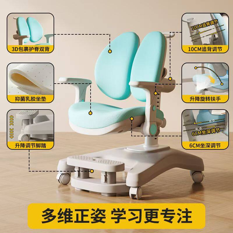 儿童学习椅升降家用小学生写字椅矫正坐姿调节书桌椅追背成长座椅