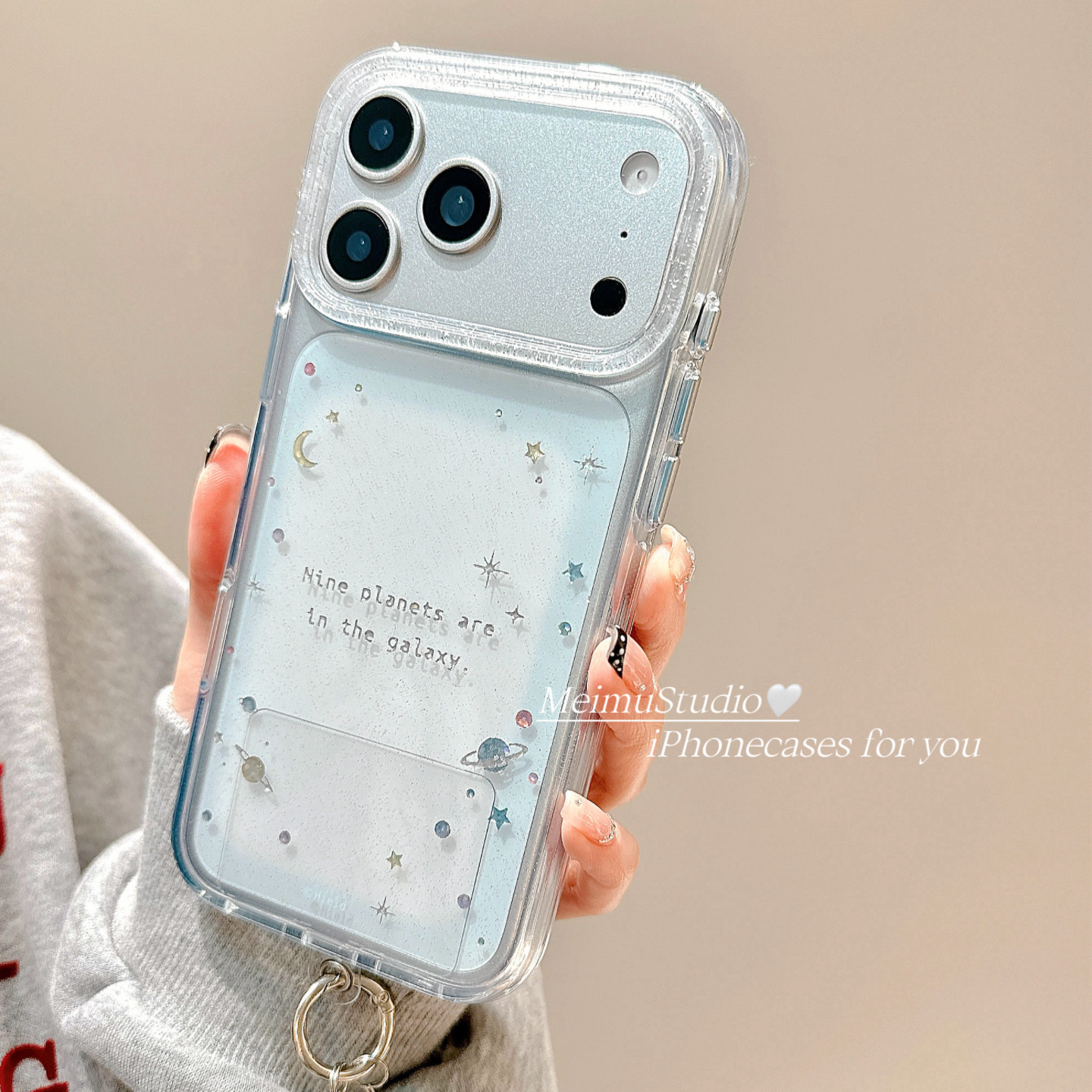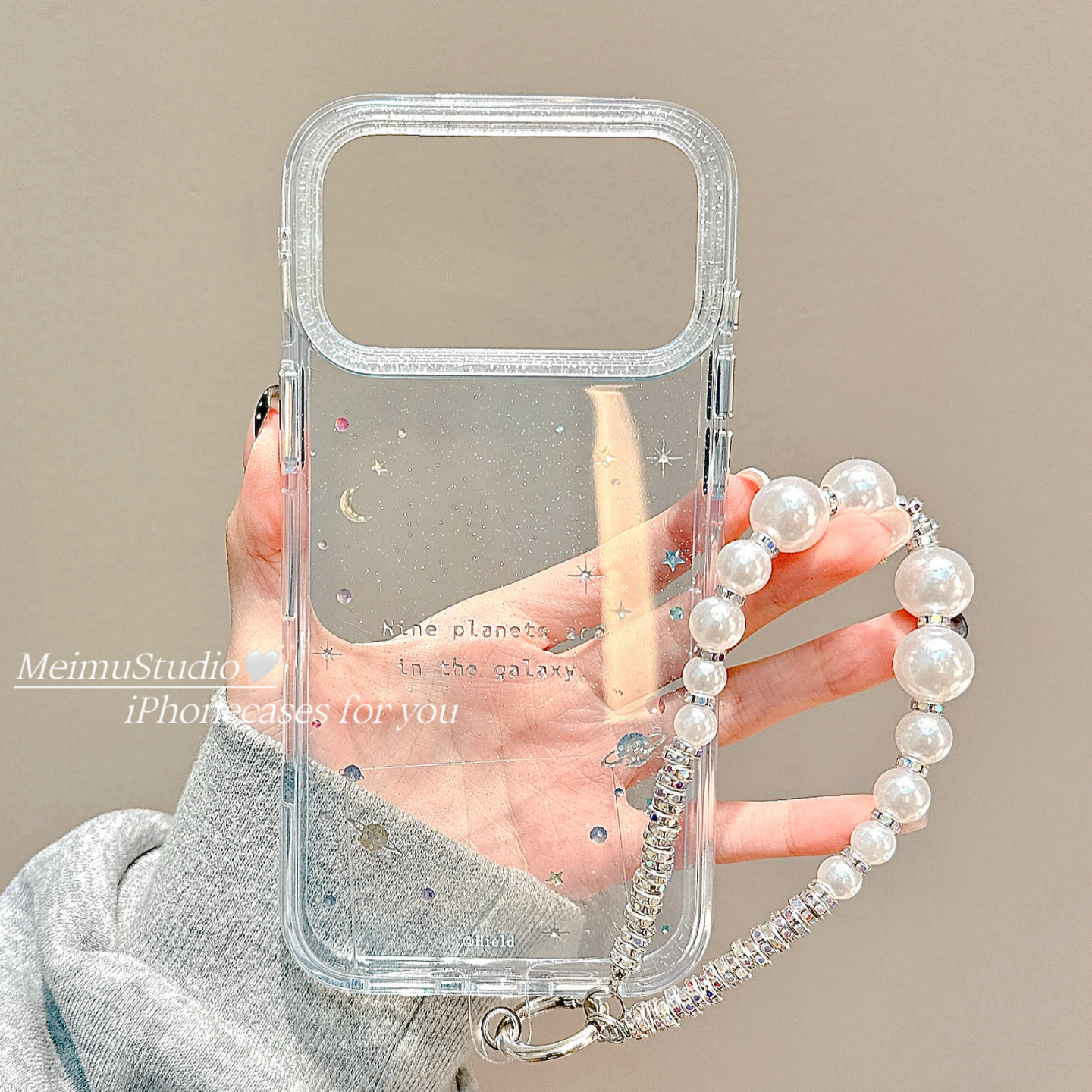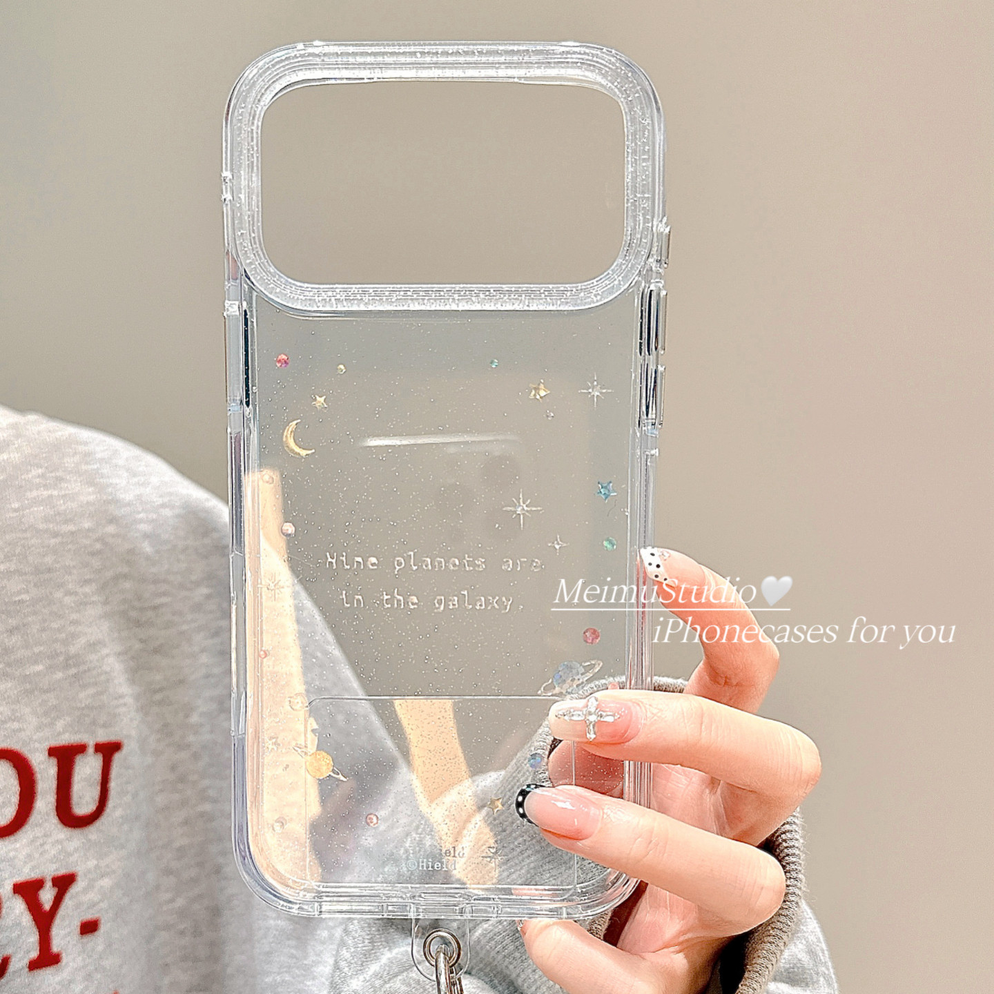 美牧ins梦幻透明闪粉星球月亮适用苹果17promax手机壳iphone16pro新款15带链条17高级14pm女13韩风16创意全包