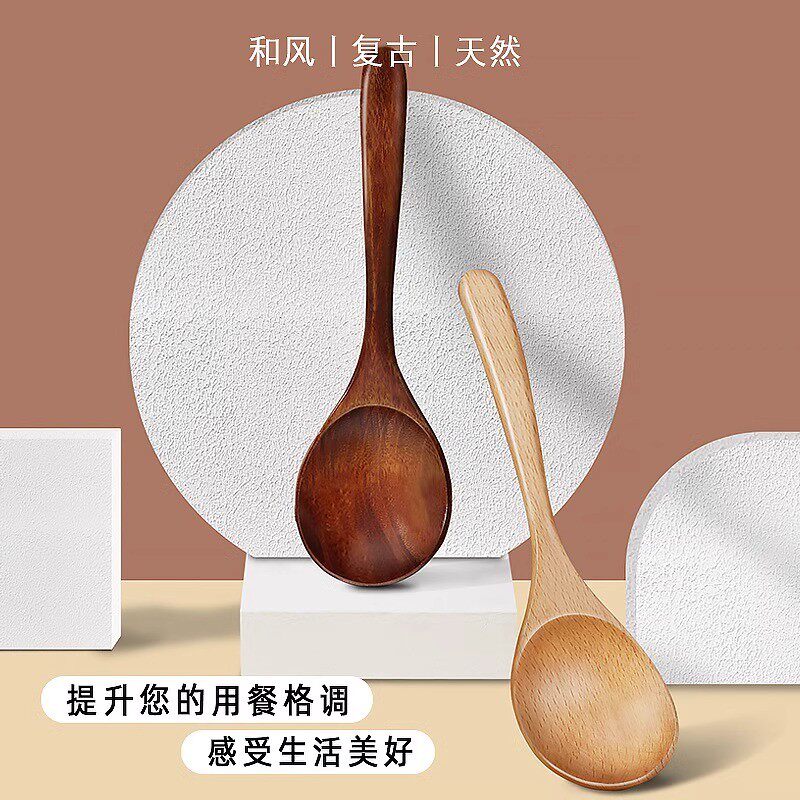 木头成人吃饭勺家用长柄大号木质勺干饭盛汤吃播嗦粉日式拉面小勺