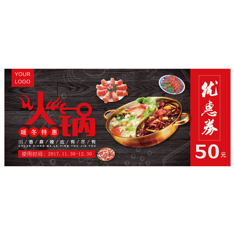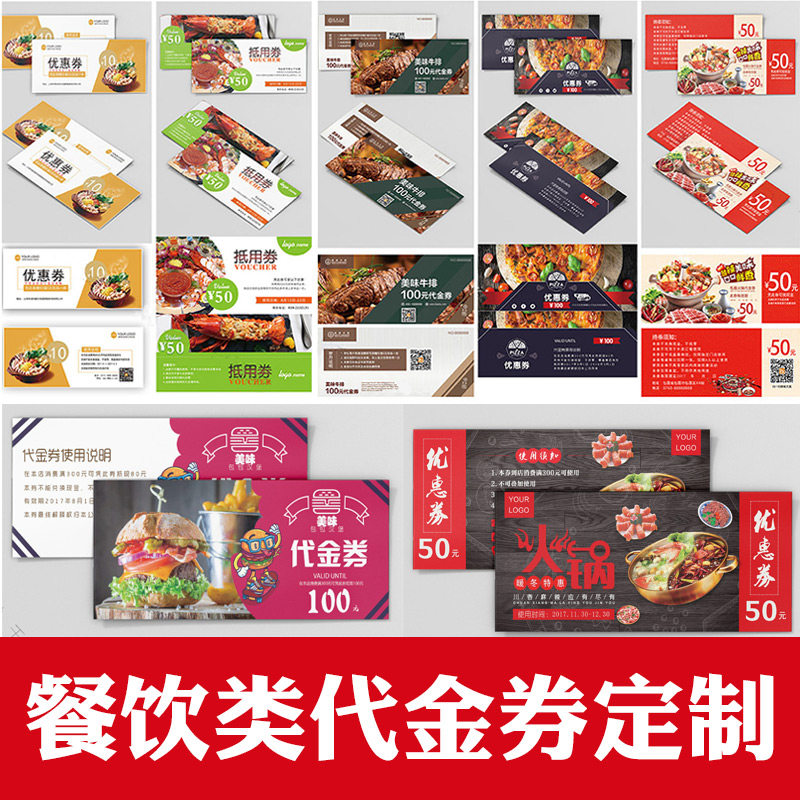 餐饮代金券订制餐厅火锅店饭店酒店抵用券定制美食烧烤海鲜小龙虾麻辣烫夜宵现金优惠劵打折卷设计制作印刷