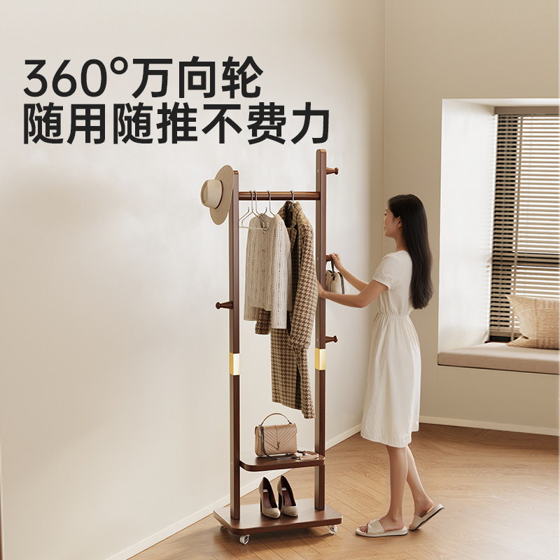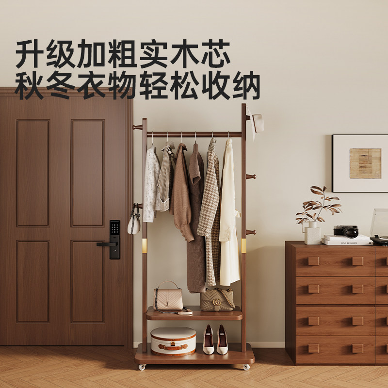 落地挂衣架卧室可移动不占地实木衣帽架入户玄关放衣服包包置物架