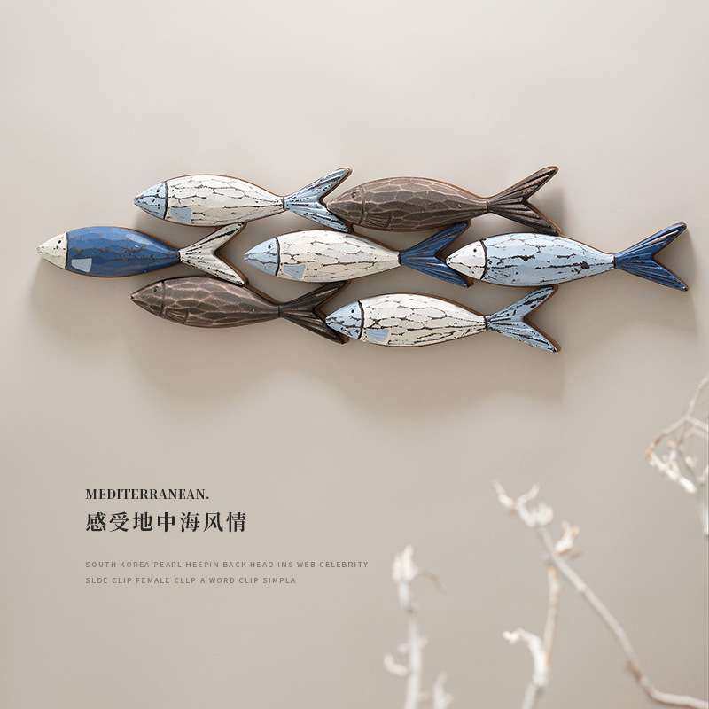 地中海创意立体鱼群挂饰民宿墙饰餐厅家居手工鱼壁饰墙面装饰挂件