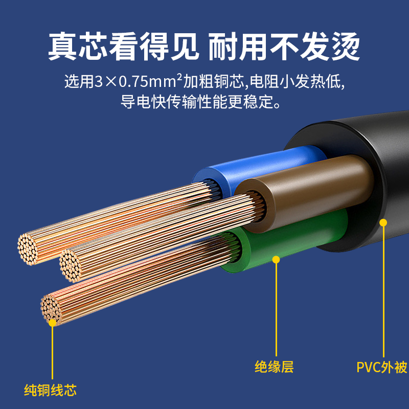 麻将机电源线三孔麻将桌插头插电线通用机麻配件加长加粗全铜电源