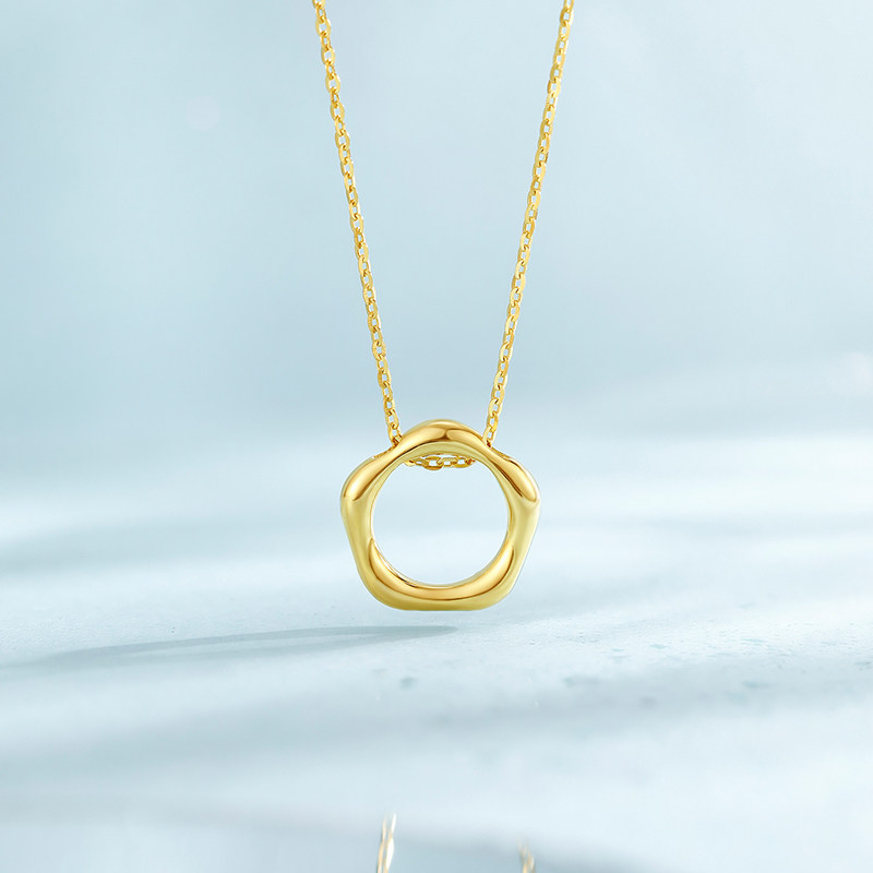 周六福圆环项链INS风S925银黄金色吊坠轻奢气质感节日礼物送女友