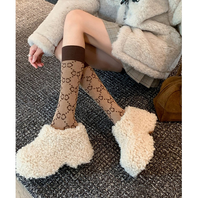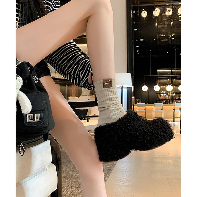 慵懒至上!8CM内增高羊羔毛毛鞋女外穿厚底加绒保暖一脚蹬勃肯鞋