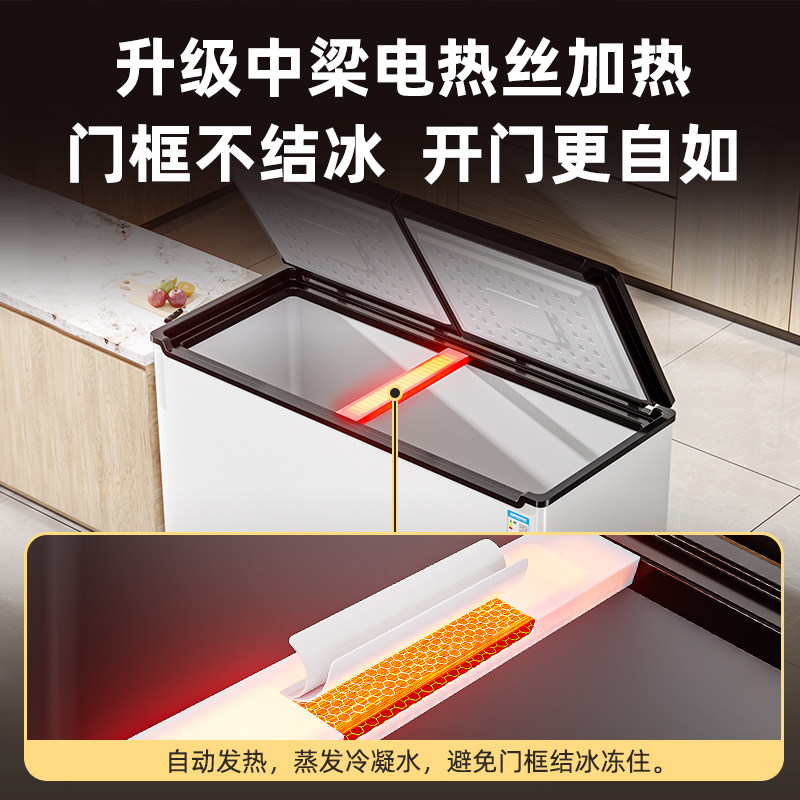 雪花一级能效冰柜风冷无霜冰箱大容量家用商用大冰柜卧式冷柜大型