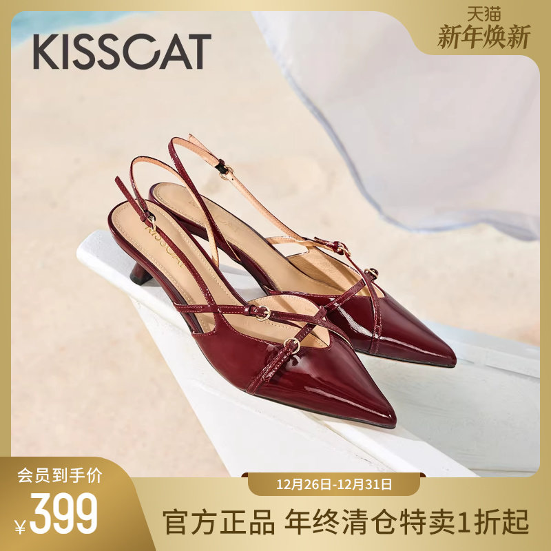 [周洁琼同款]接吻猫[可爱恋人]夏季新款尖头条带空鞋真皮凉鞋女