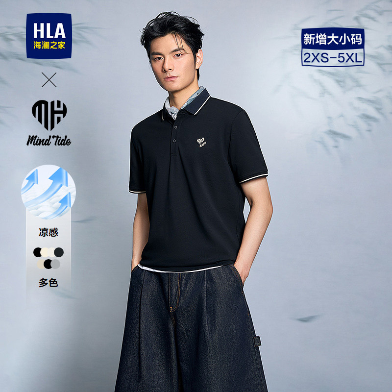 HLA/海澜之家山不在高凉感短袖POLO衫26春夏新大码刺绣翻领T恤男