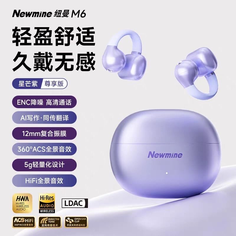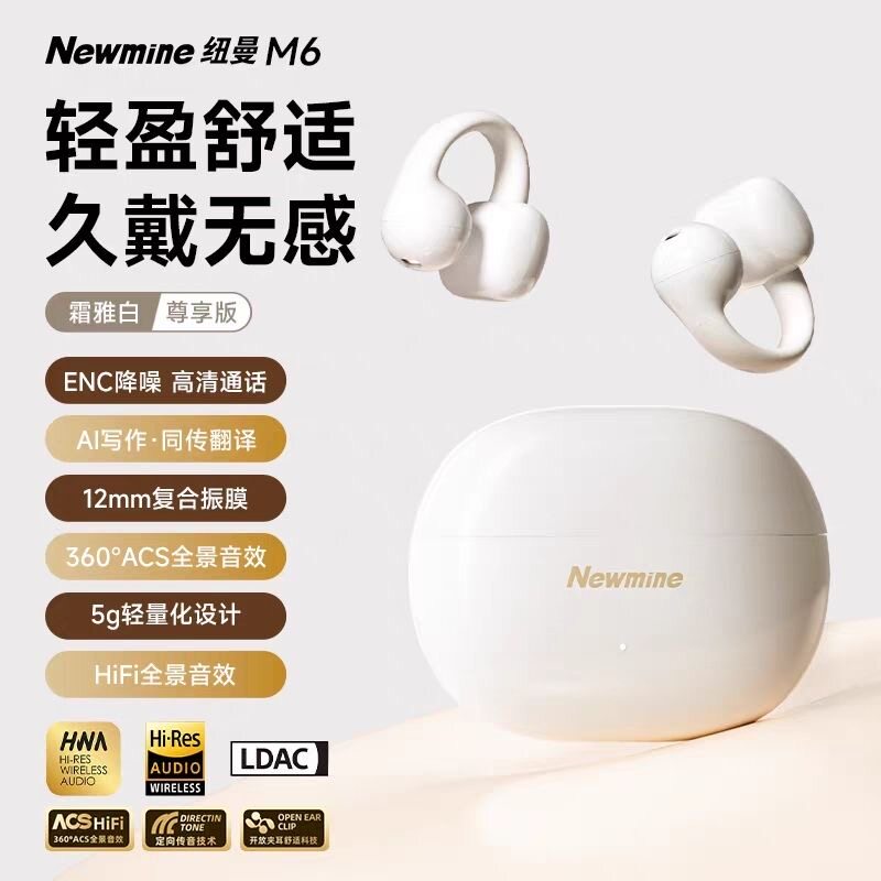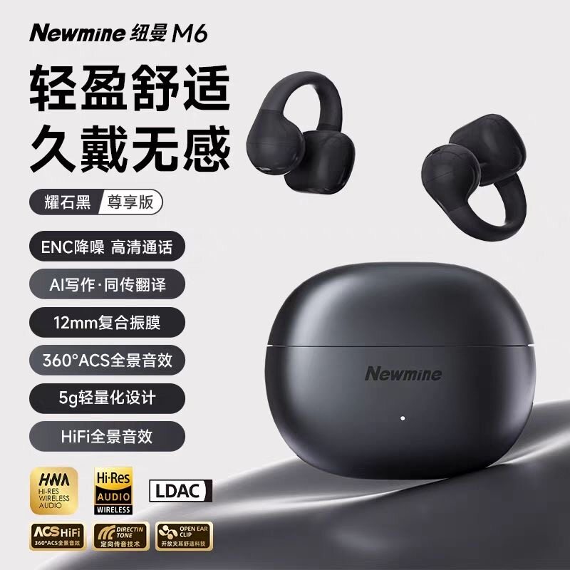 纽曼M6-S7无线蓝牙耳机耳夹式运动跑步AI智能翻译同声传译