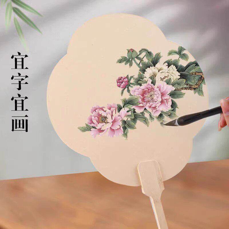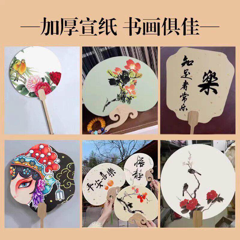 加厚宣纸团扇空白扇子古风半生熟扇面国画绘画扇子毛笔书法专用di