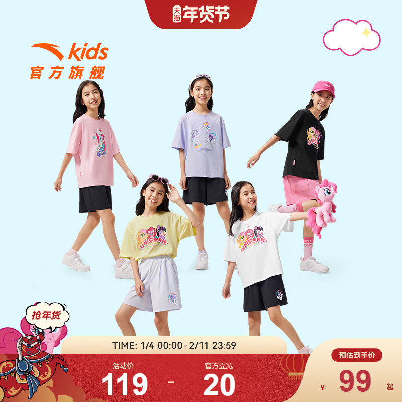 小马宝莉IP联名安踏儿童女童短袖T恤衫2025夏季新款大童纯棉上衣