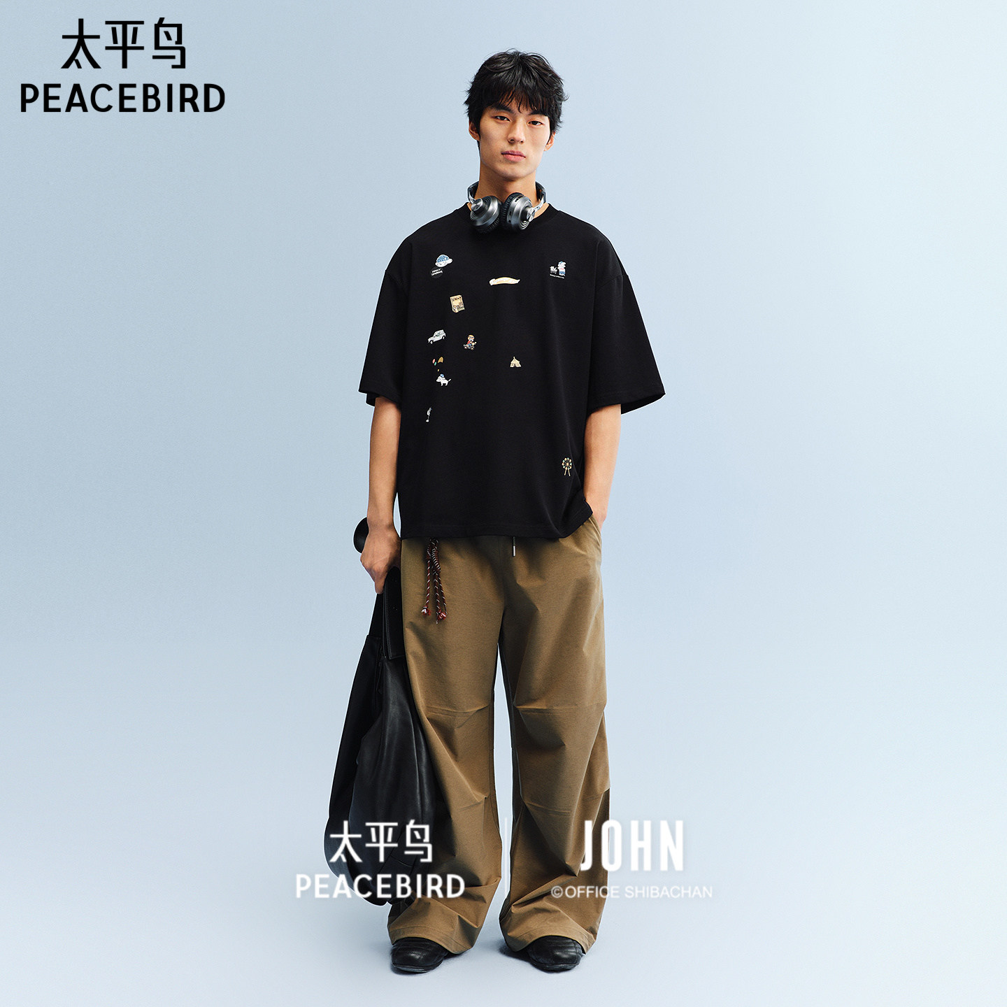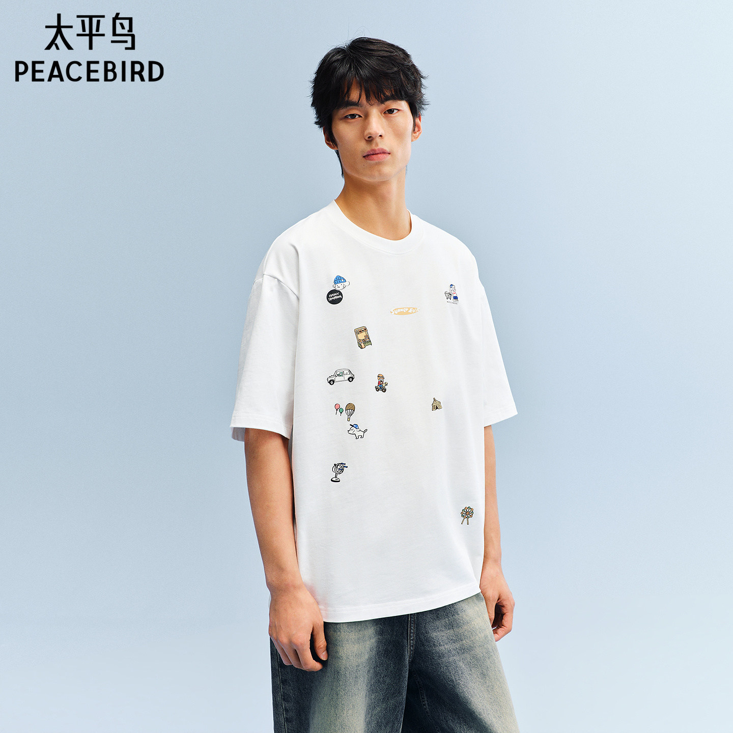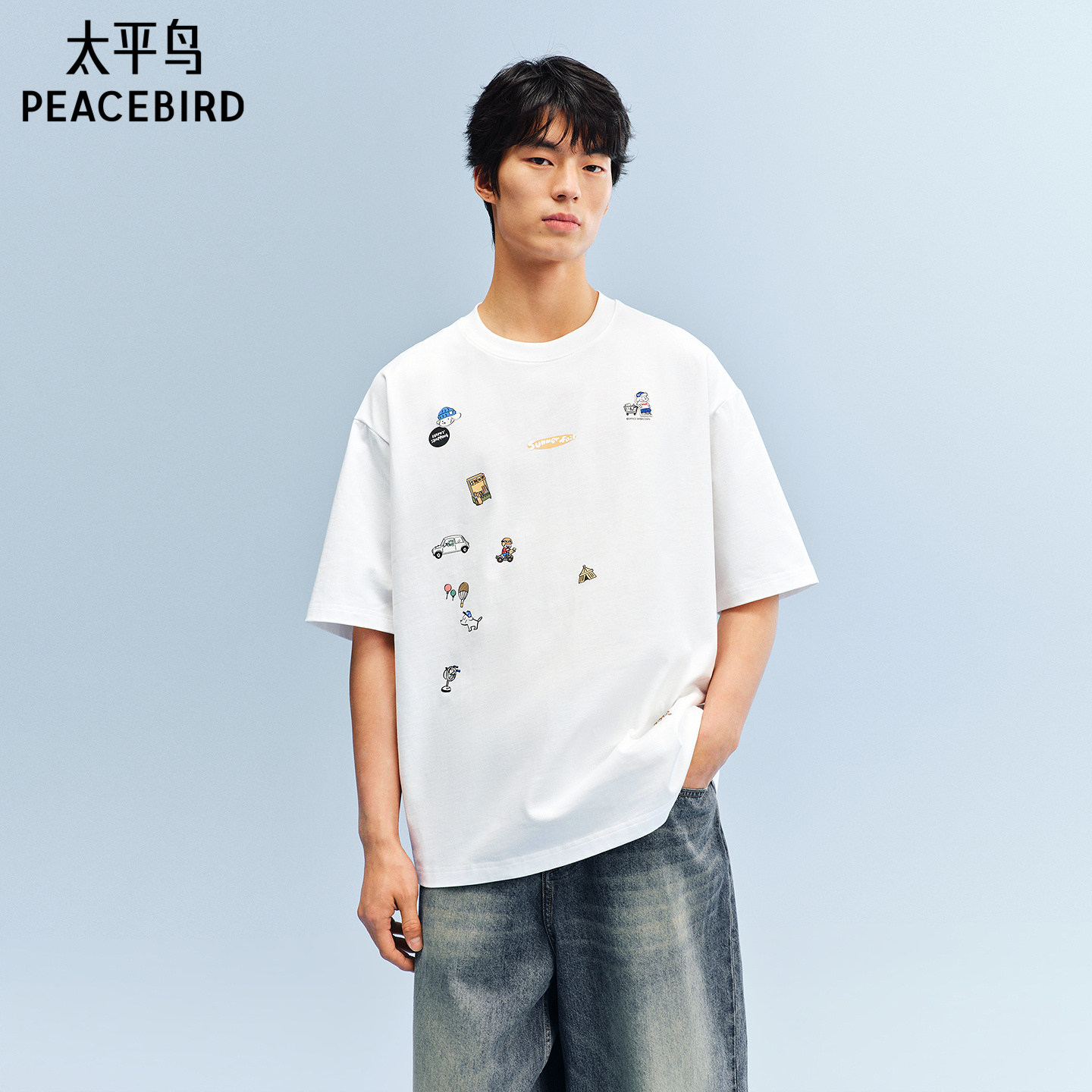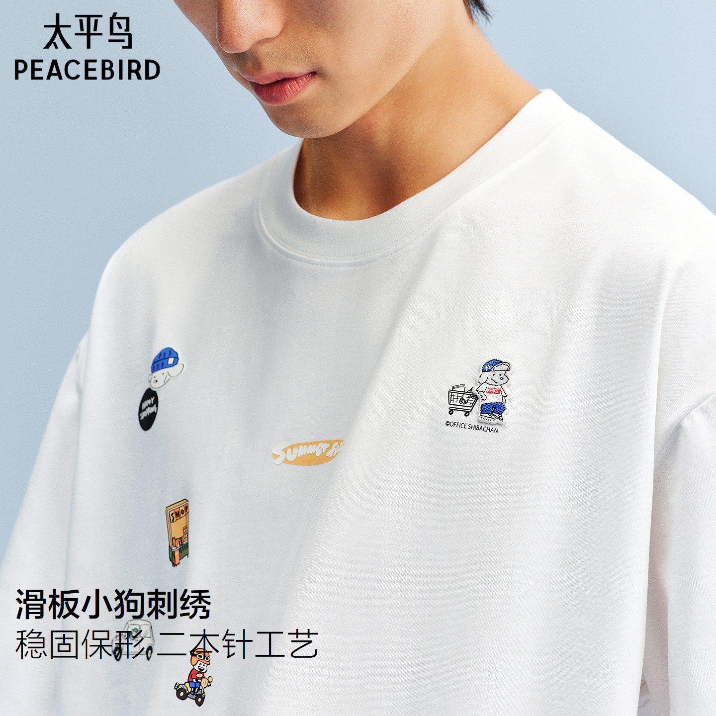 太平鸟男装 滑板小狗联名圆领重磅体恤衫26夏新款纯棉刺绣短袖T恤