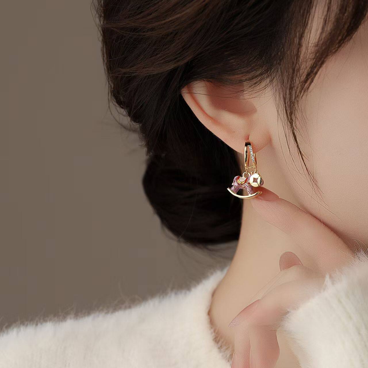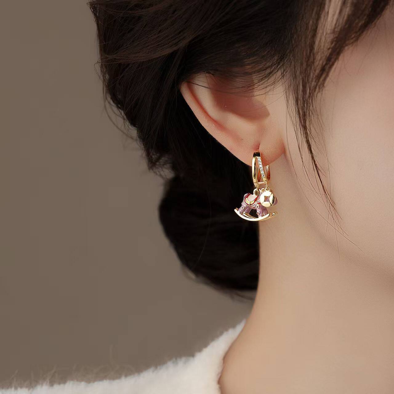 本命年紫色小马钱币耳环女2026新款爆款高级感耳钉适合冬天的耳饰