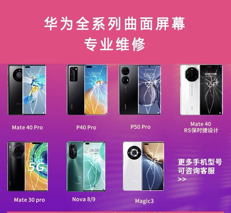 适用于华为换碎屏p60荣耀30v40Mate50pronova7屏幕原换外屏matex2