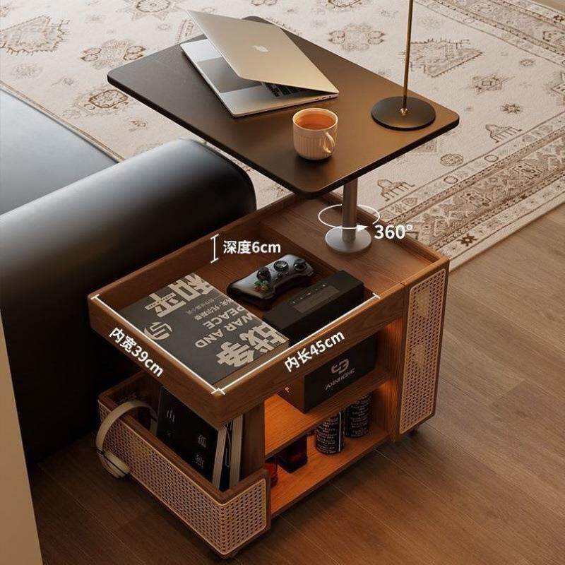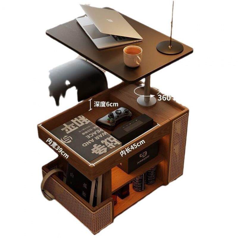实木家具可移动边几巴士升降茶几家用客厅沙发边柜子中古风小推车