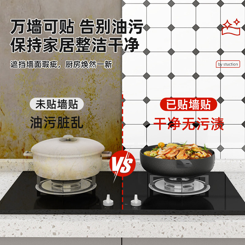 厨房防油贴纸墙面防火耐高温墙纸自粘仿瓷砖墙壁翻新贴纸防水防潮