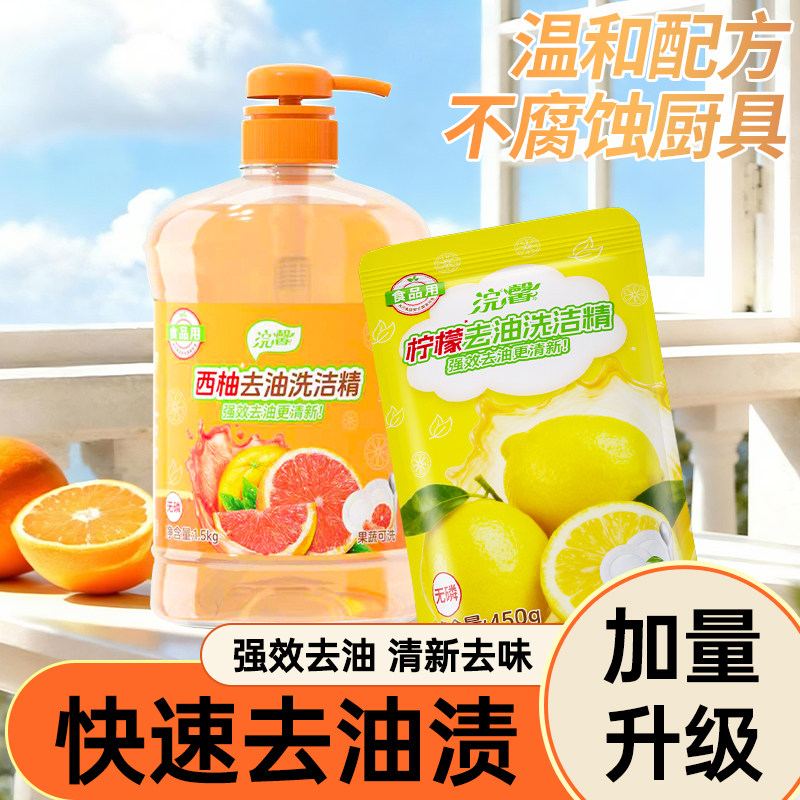 超能西柚爆汁鲜柠胶原护手食品用洗洁精去油家用去腥祛味a类