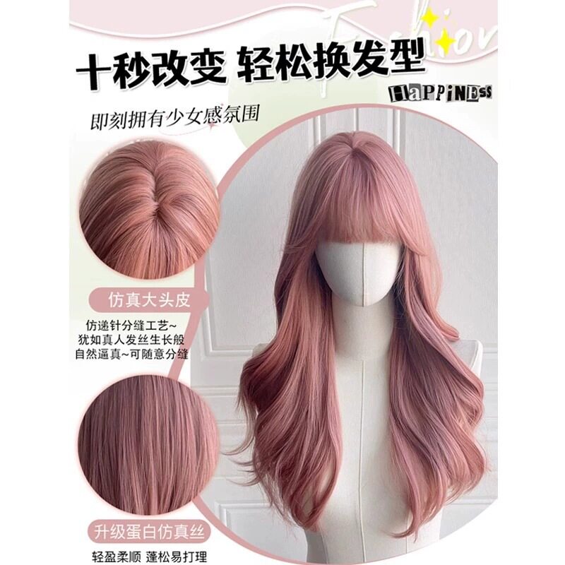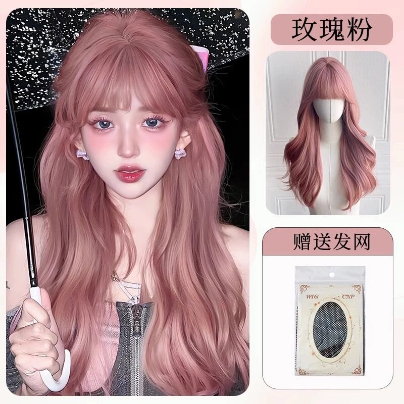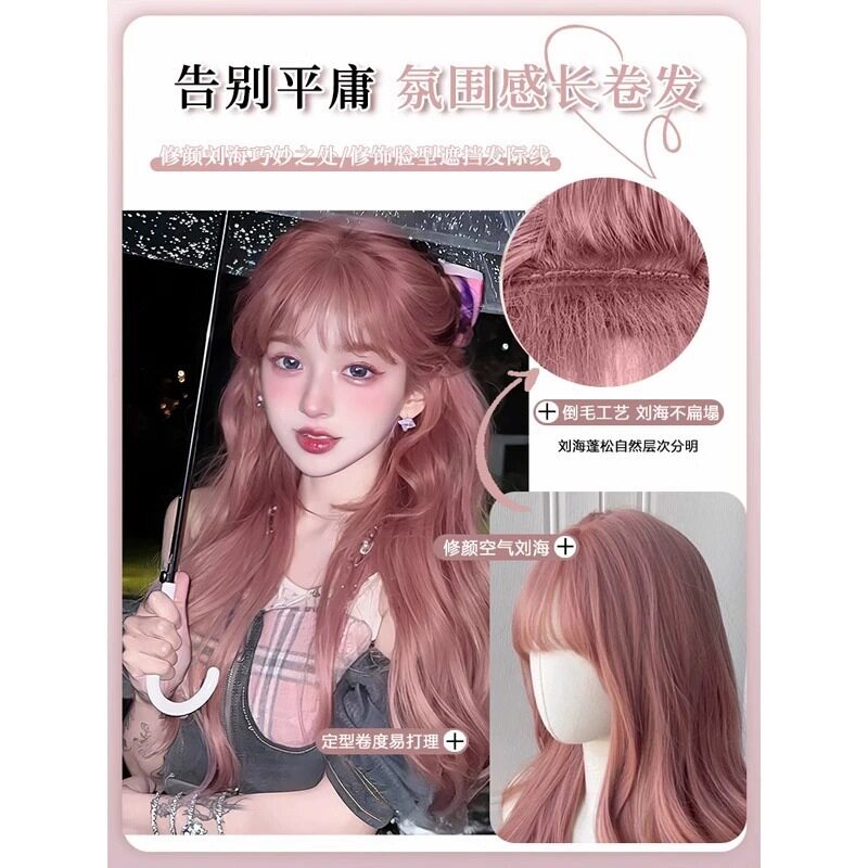水舞沙玫瑰粉色假发女长发夏季薄款长卷发大波浪自然仿全真人发丝