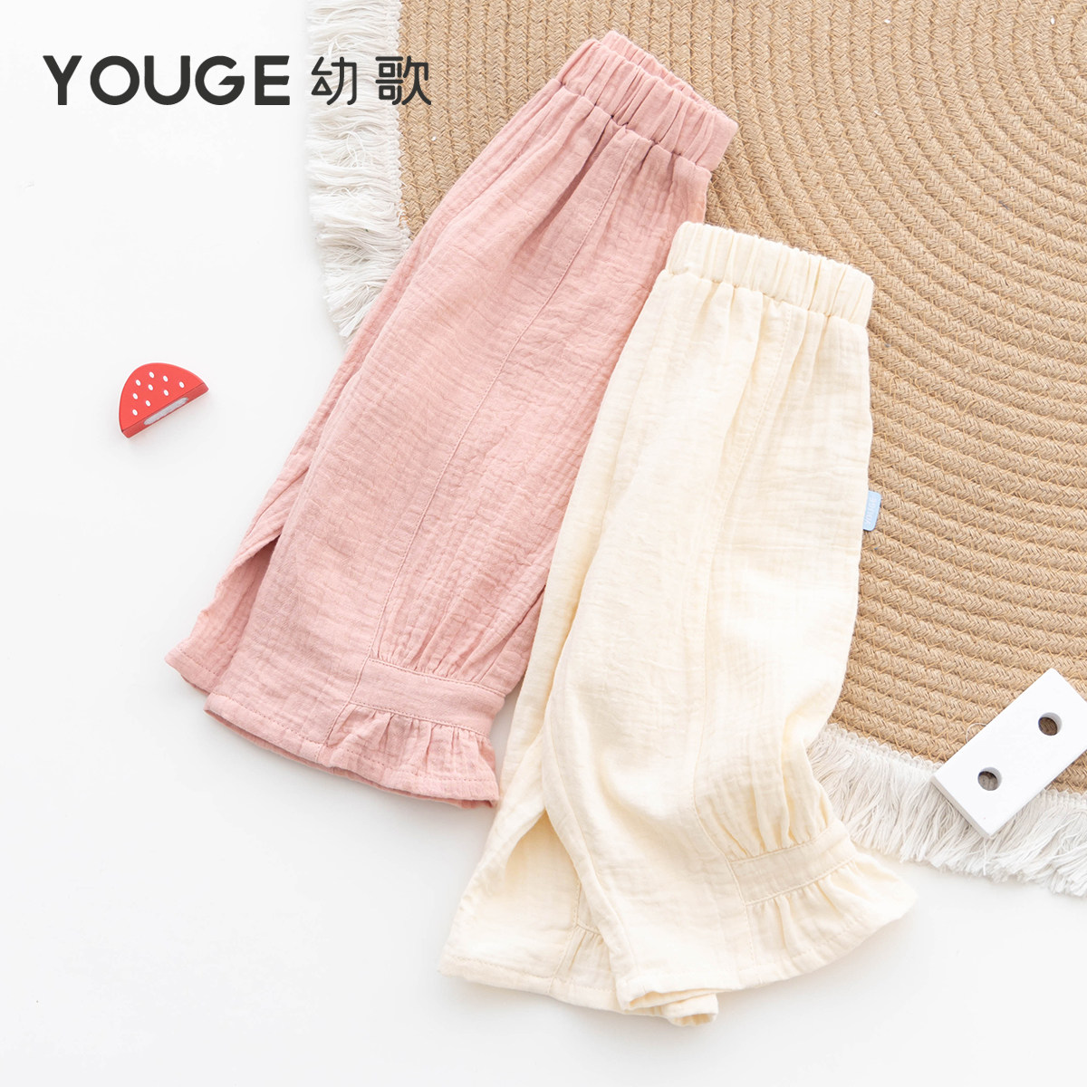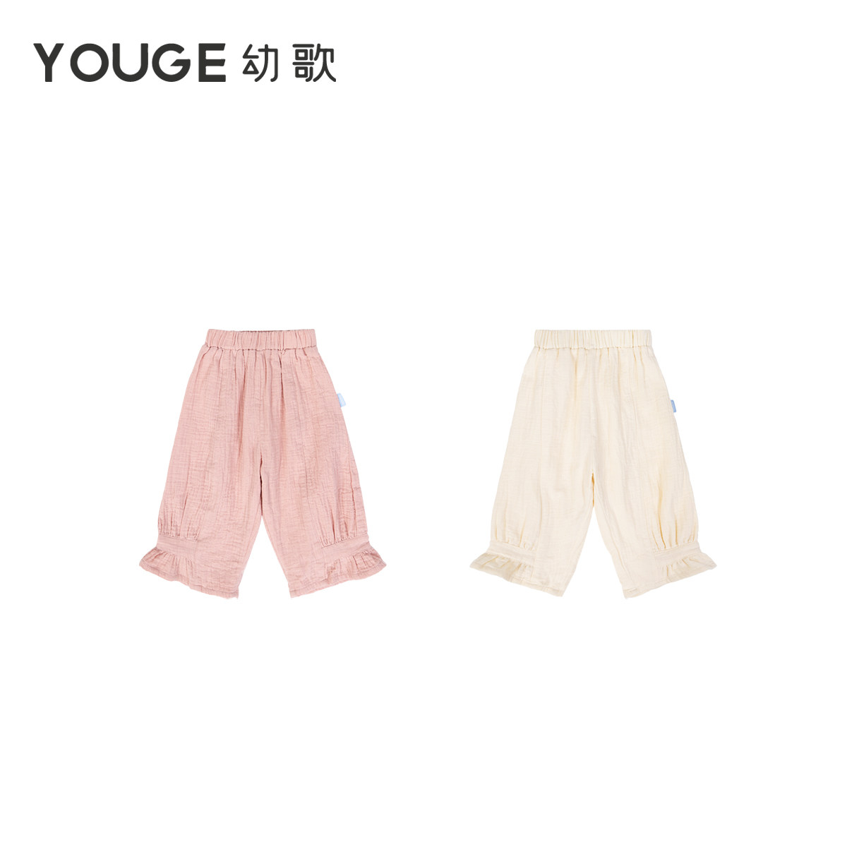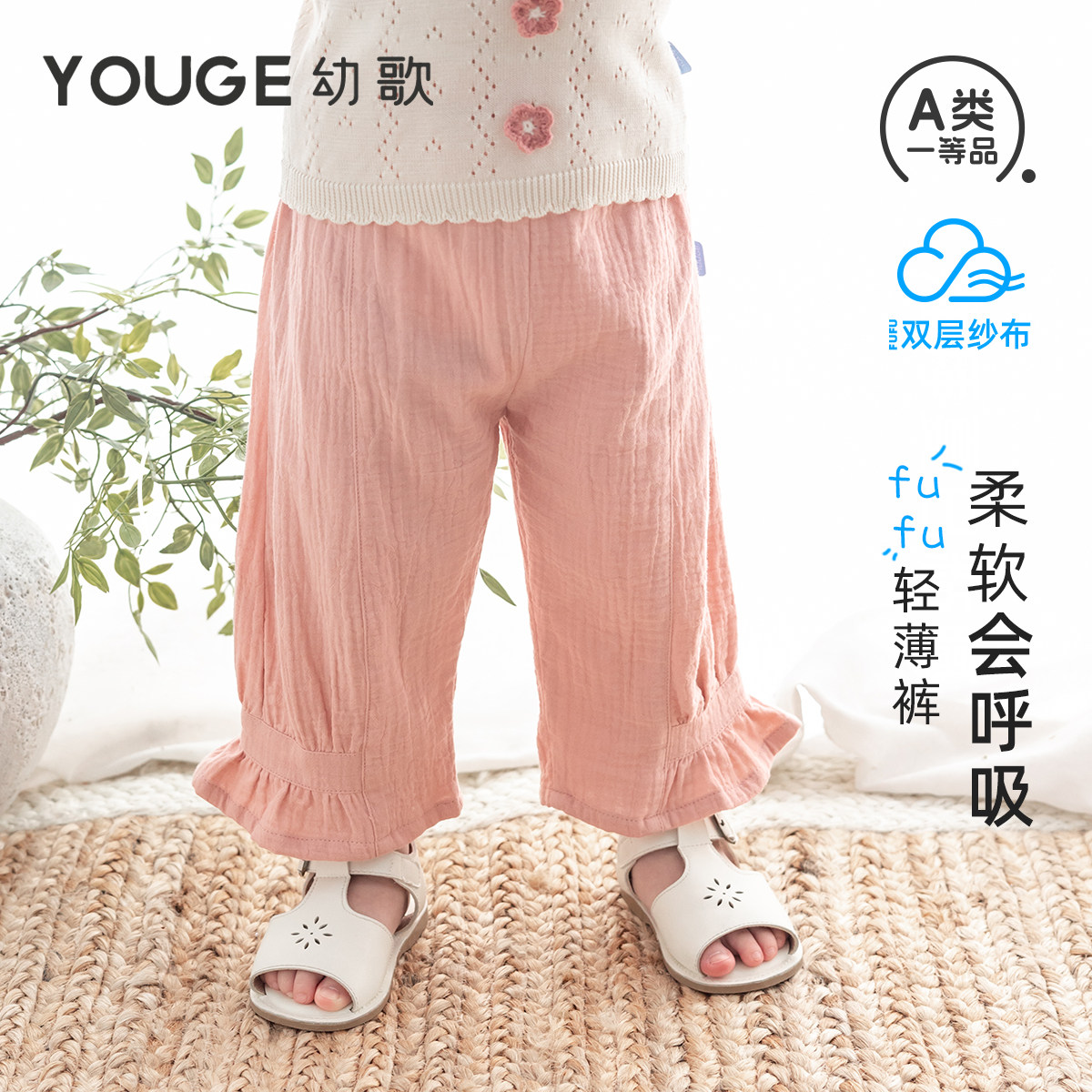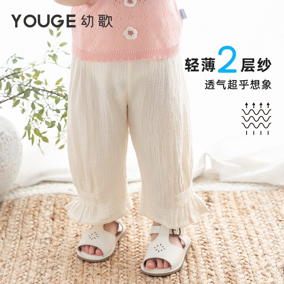 YOUGE幼歌 2025夏季新款婴幼儿高支花边长裤宽松清凉透气防蚊裤潮