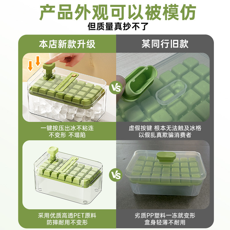 冻冰块模具按压冰格制冰神器带盖食品级自制制冰盒家用冰箱储存盒