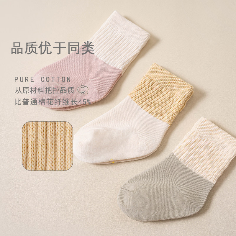 婧麒新生儿婴儿袜子0一3月儿童春秋冬款初生宝宝女不勒腿中筒袜子