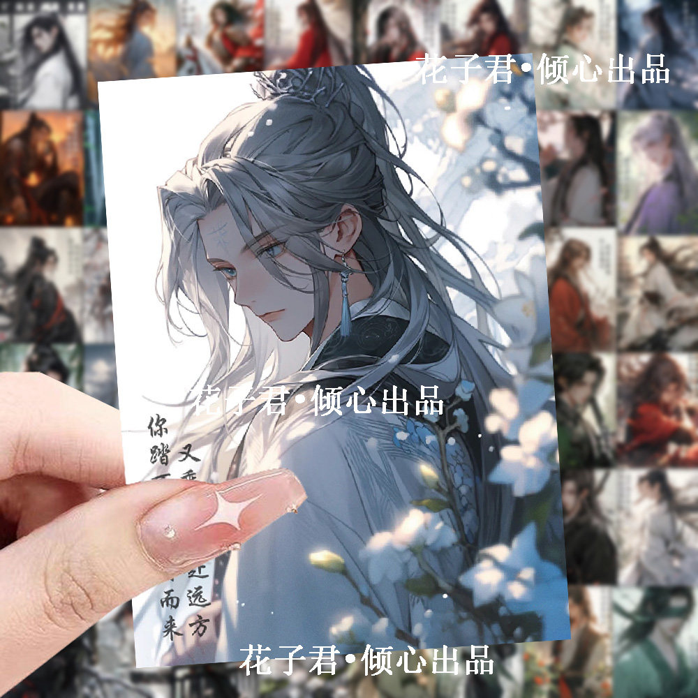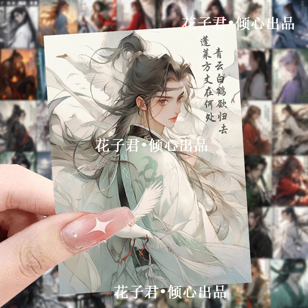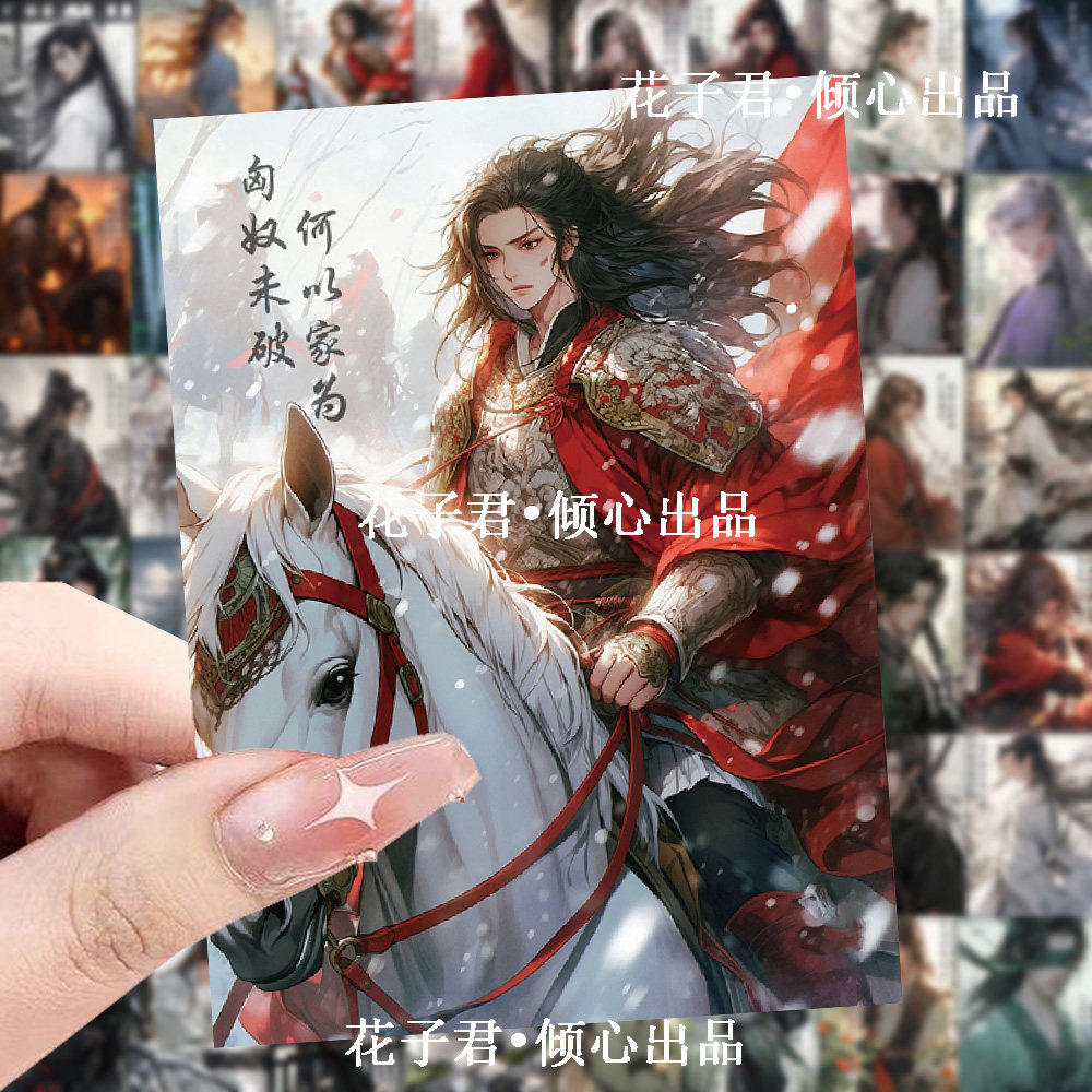 120张爆款高颜值国风少年贴纸国潮励志文字古风画中人手账贴画