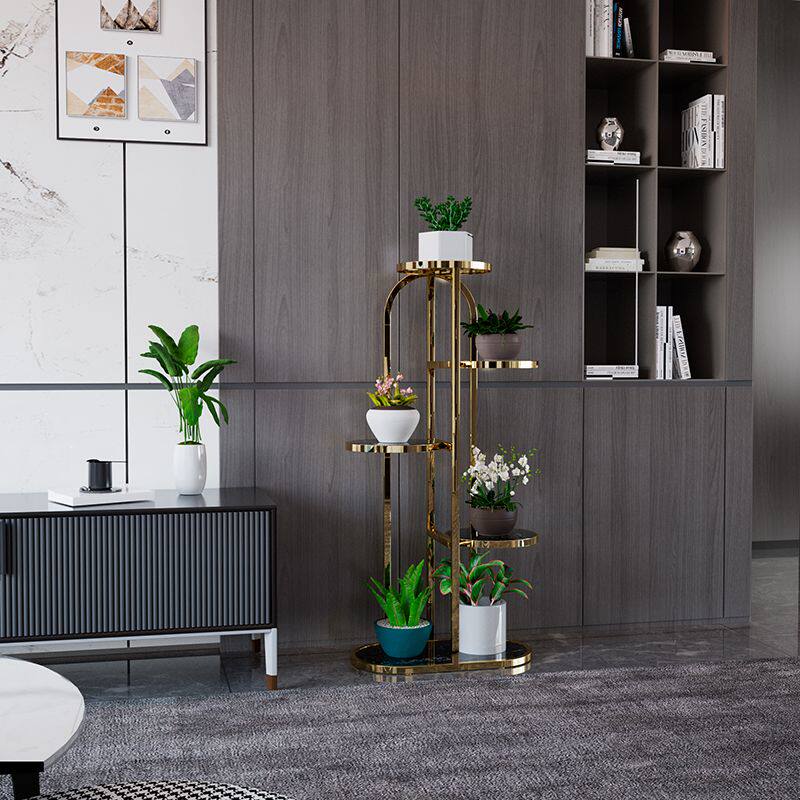 d也朵304不锈钢多层花架轻奢金色电视柜旁落地式摆台阳台高档客厅