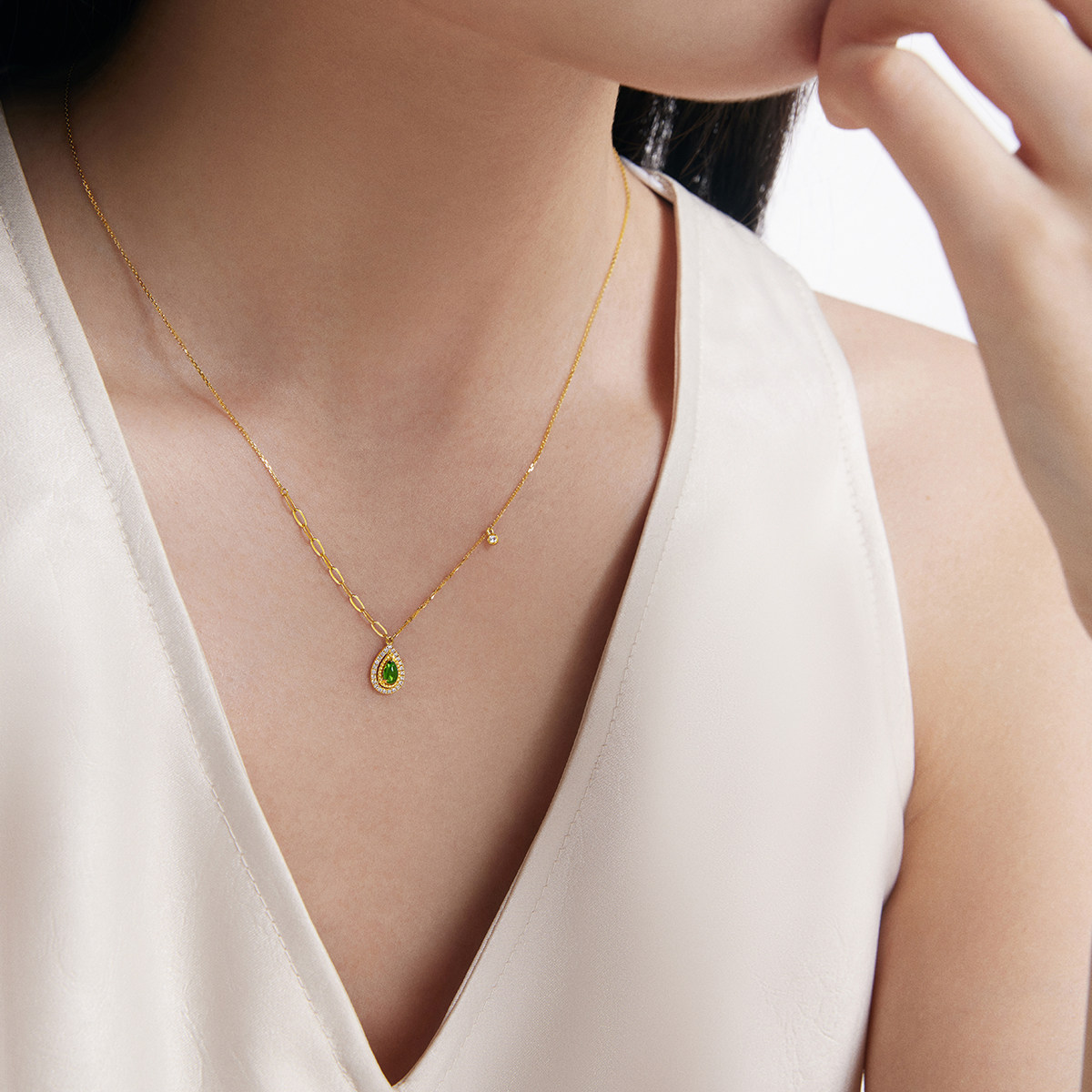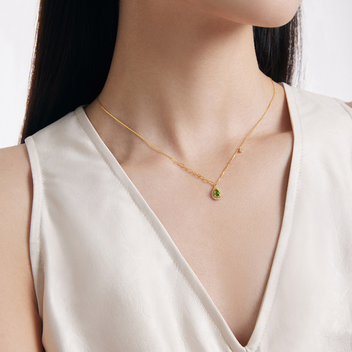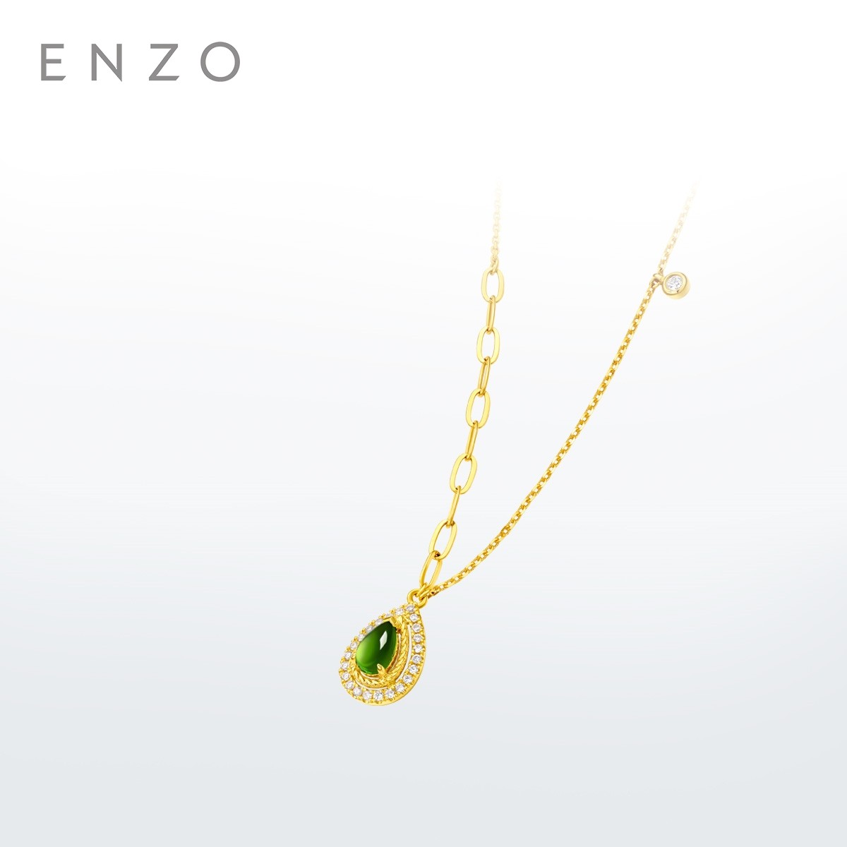 新款ENZO 水滴薄荷轻奢简约款 18K金透辉石钻石项链女节日礼物