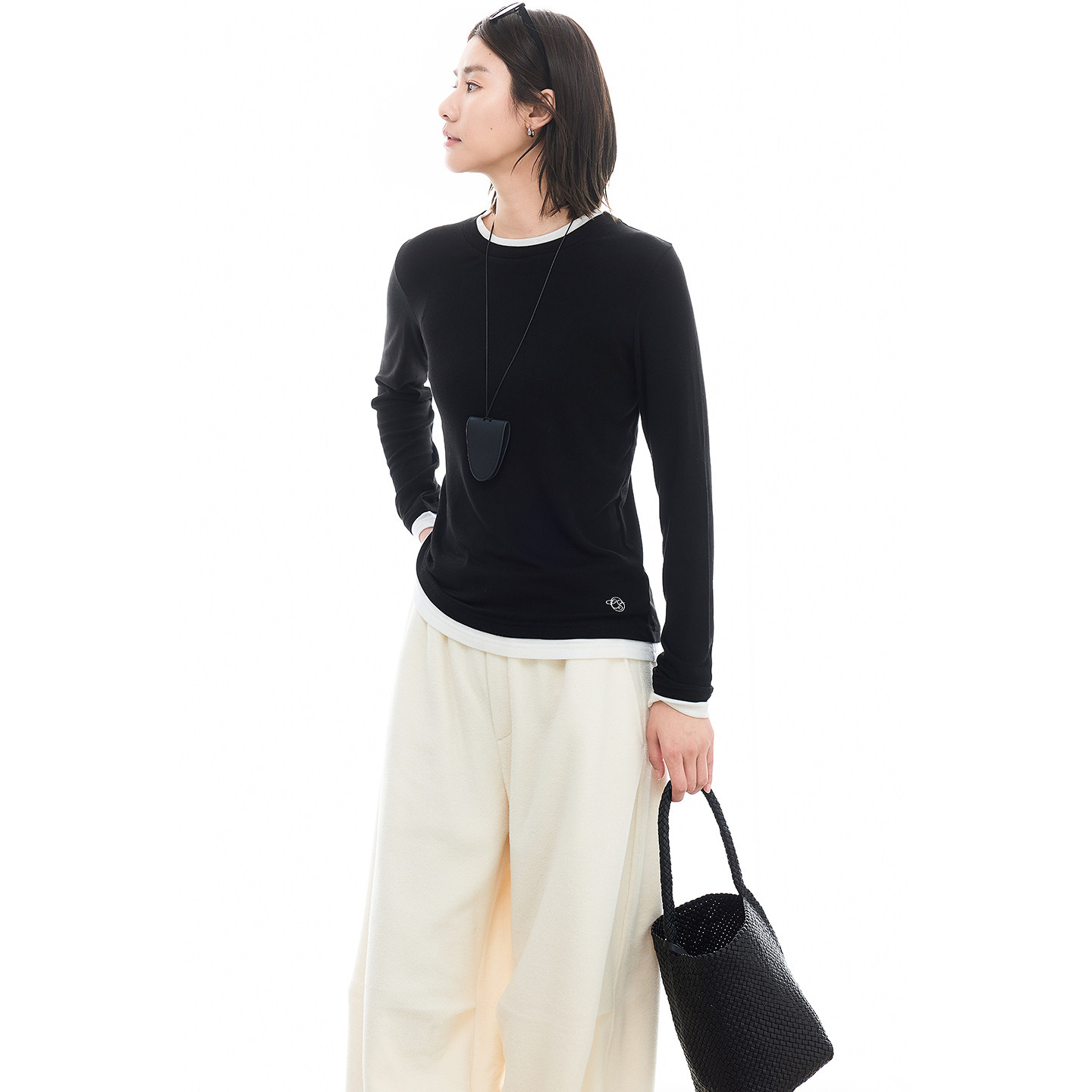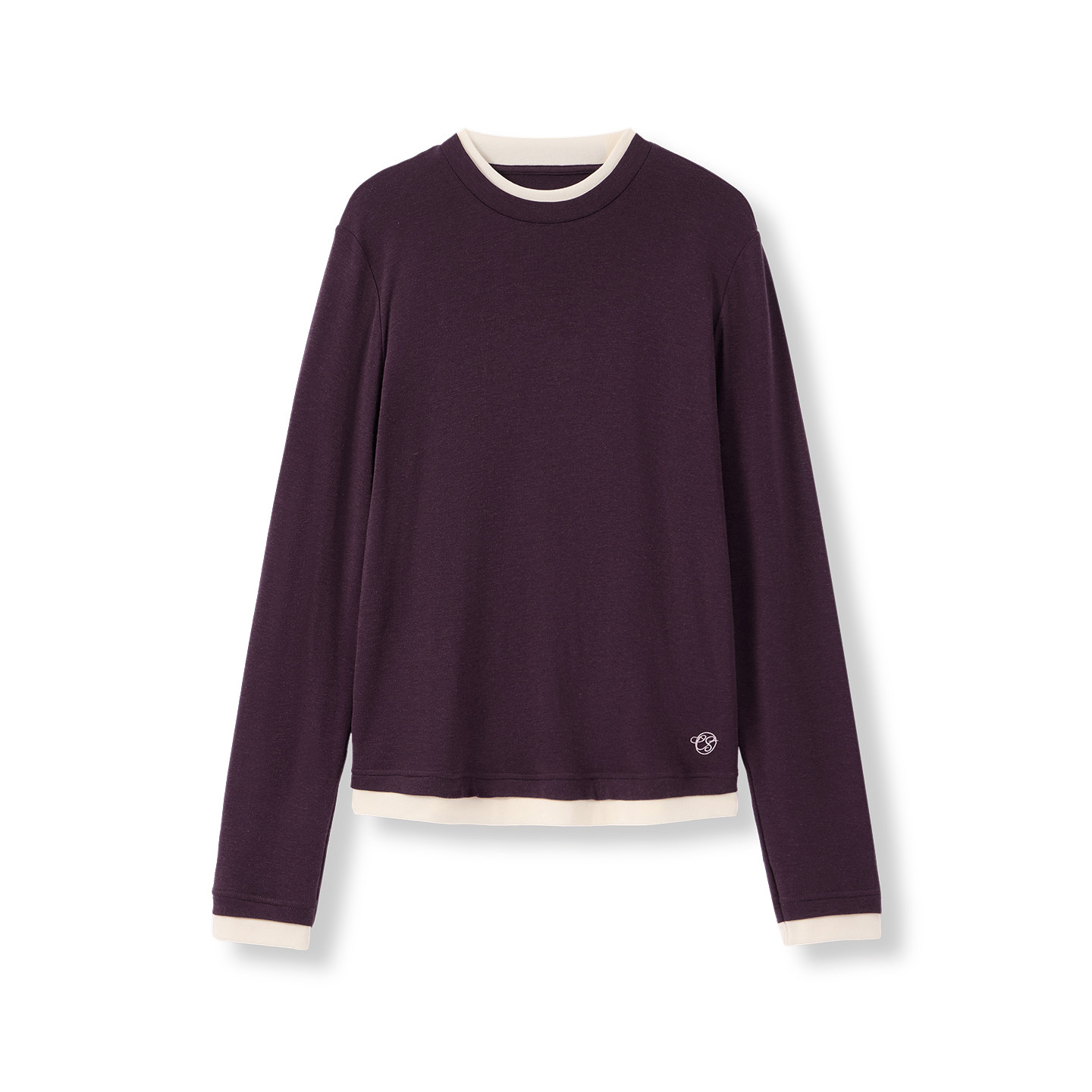 云上生活【小格调】假两件莱赛尔桑蚕丝混纺长袖女T恤2025冬上衣