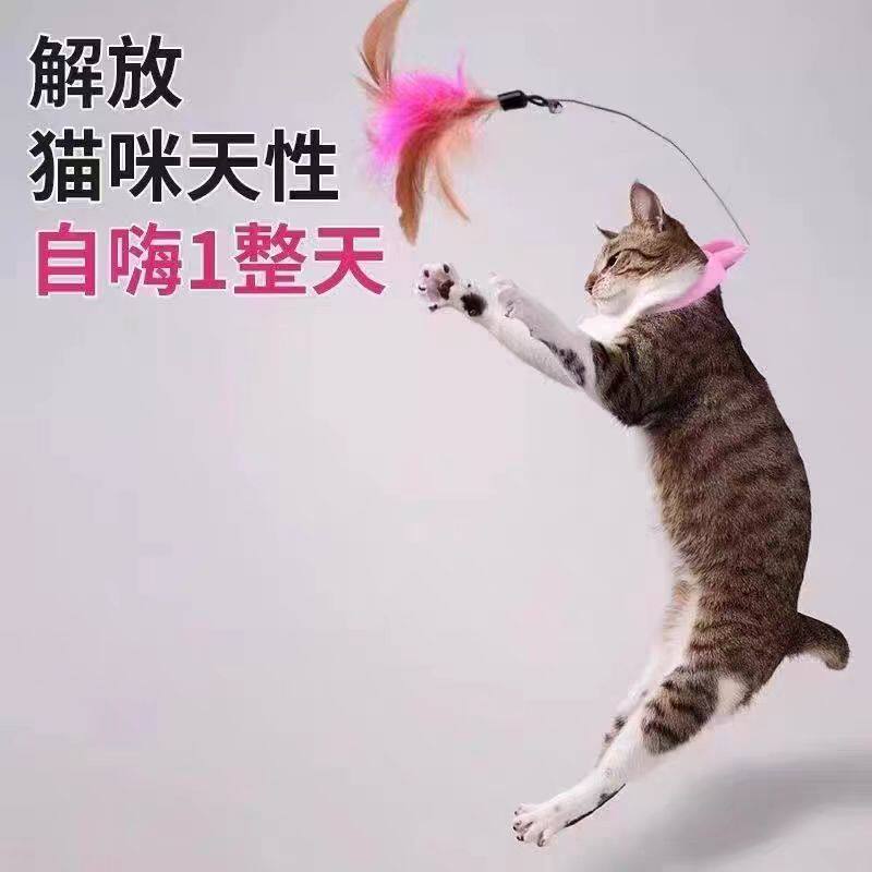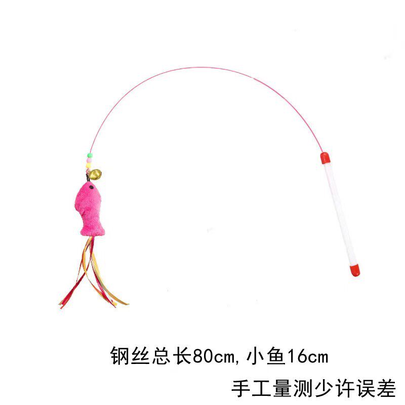 宠物钢丝羽毛小鱼铃铛逗猫棒自嗨解闷神器逗猫杆猫咪玩具互动超长