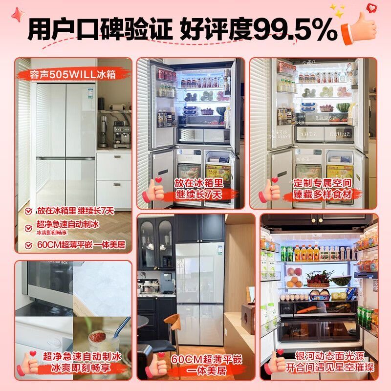 Ronshen/容声 BCD-505W60CZBAS双系统十字门超薄零嵌入式冰箱一级