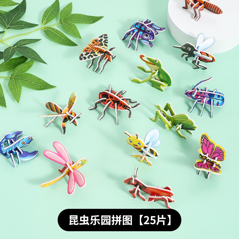 3D趣味昆虫立体拼图儿童创意DIY玩具幼儿园早教手工拼装益智卡片