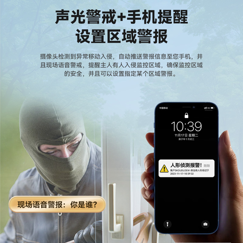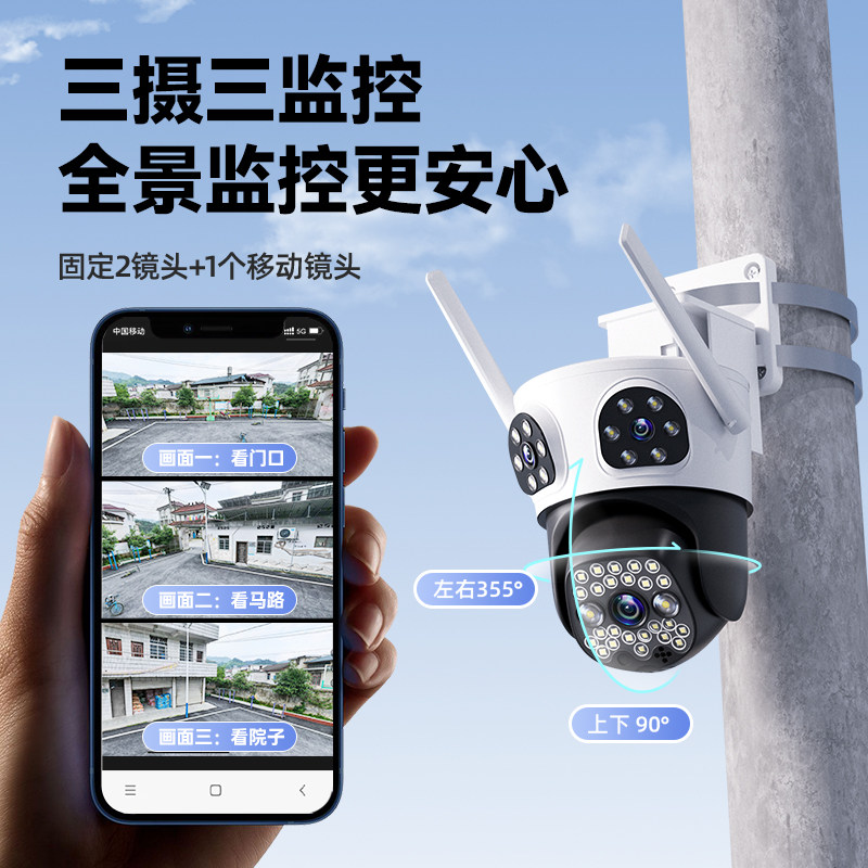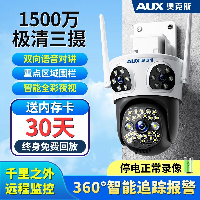 奥克斯摄像头监控器360度无死角室外防水店铺家用手机远程高清影